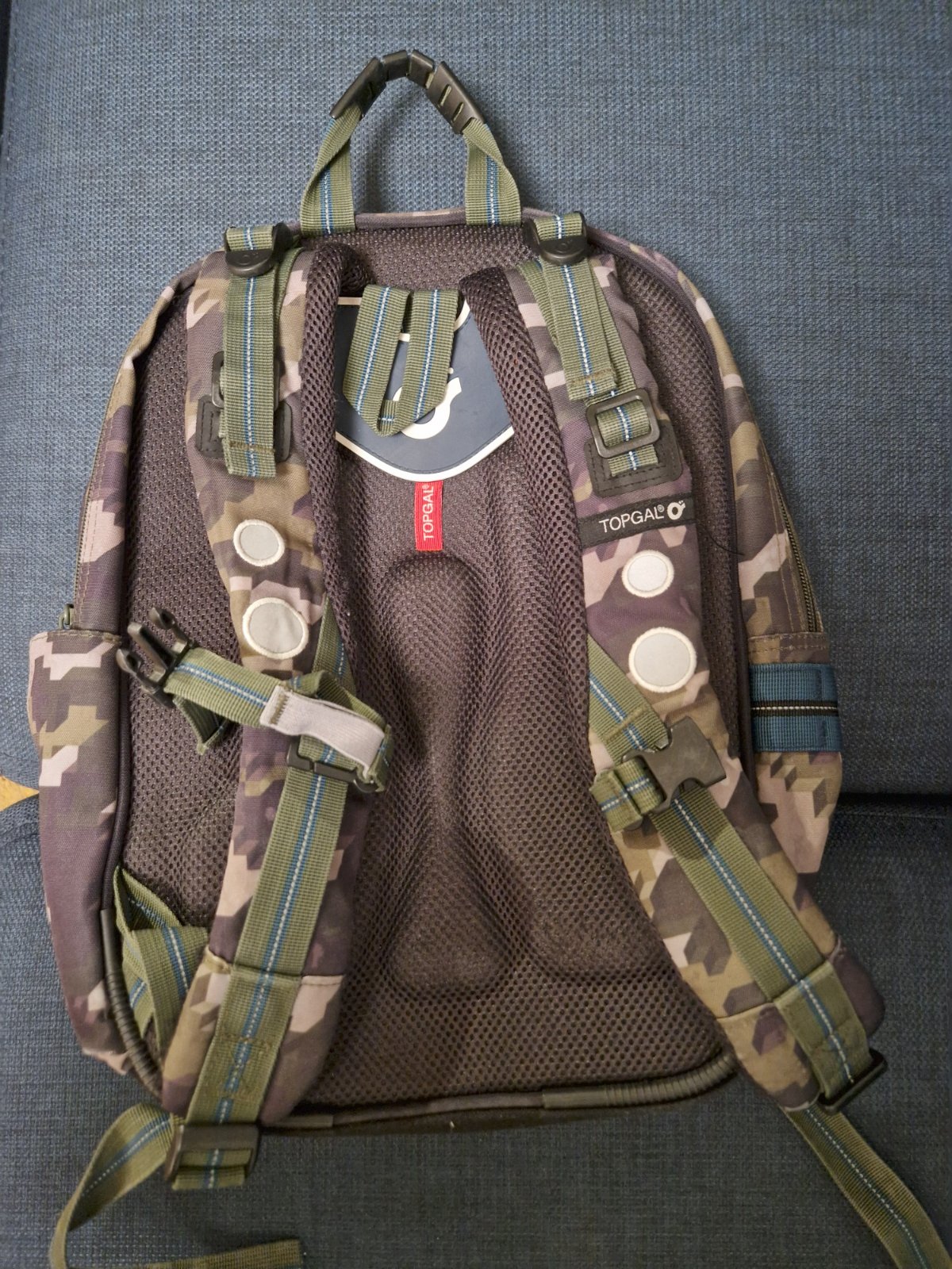 Kvalitna skolska taska Topgal, v dobrom stave bez poskodeni, iba osuchane niektore miesta - primerane pouzivaniu. Vhodna pre 2.-5. triedu, je priestranna, s niekolkymi vacsimi vreckami. S hokejovym...