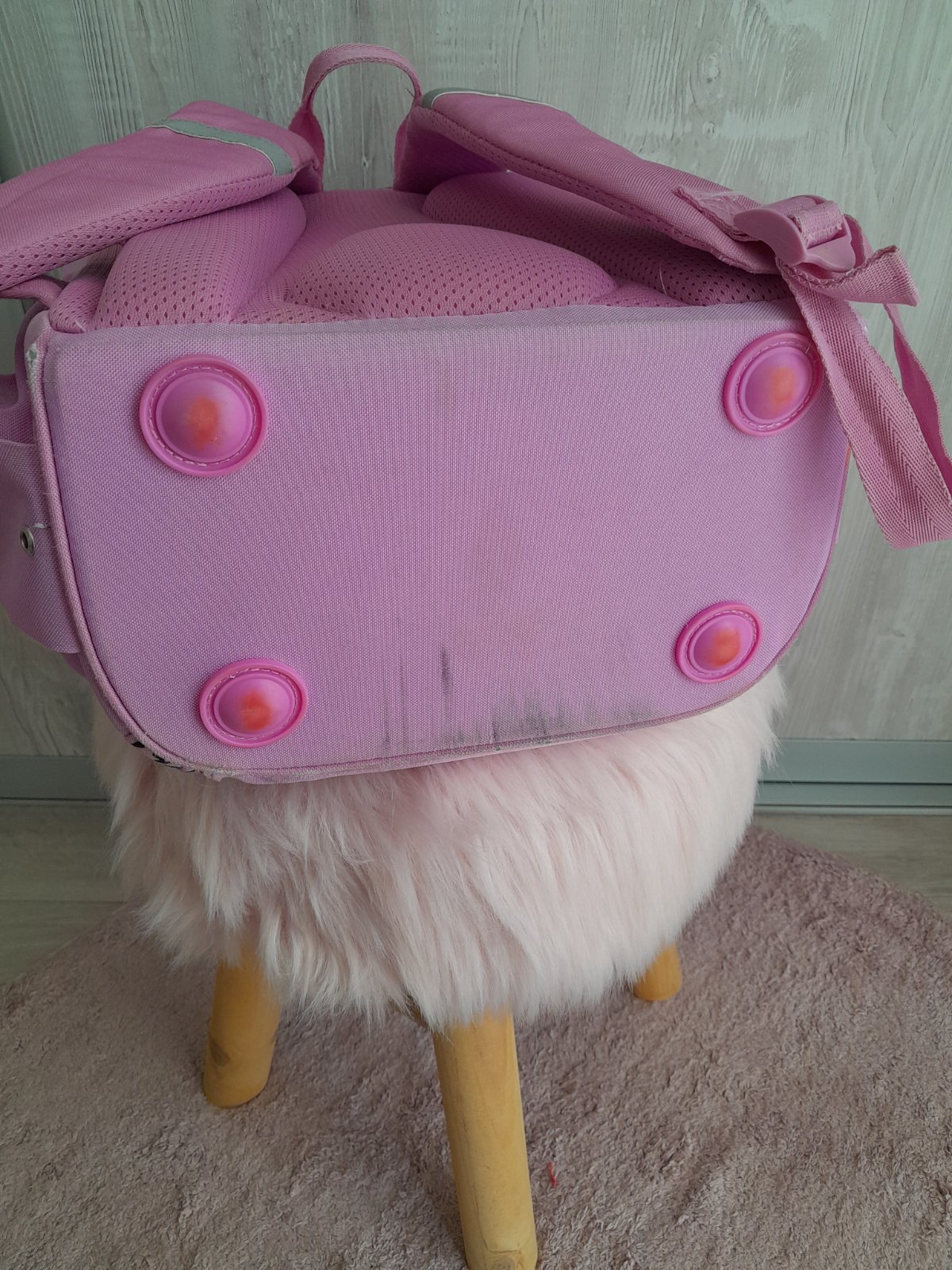 Nevymieňam!!aktovka nosená jeden školský rok,zapínanie vpredu,nemá zips,s jednou veľkou priehradkou uprostred,a menšou vpredu na desiatu,bočné vrecká na fľašu,pevný spodok,rozmer,výška 37cm,šírka 31cm,hĺbka 16,5cm,bežné známky používania,bude treba dočistiť miestami,PC 38eur...kuk aj na iné moje inzeráty