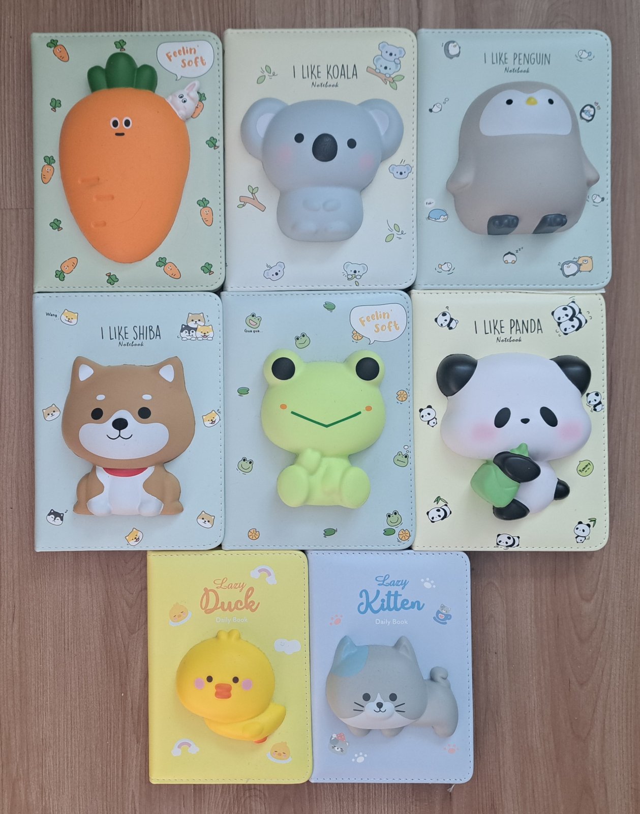 Zápisník je v pevnej väzbe so stužkovou záložkou, obal je mäkkučký. V strede obalu je 3D squishy postavička. Strany sú rôznych farieb a prevedenia (linajkové, čisté, štvorčekové s obrázkami). Počet listov: do 130.