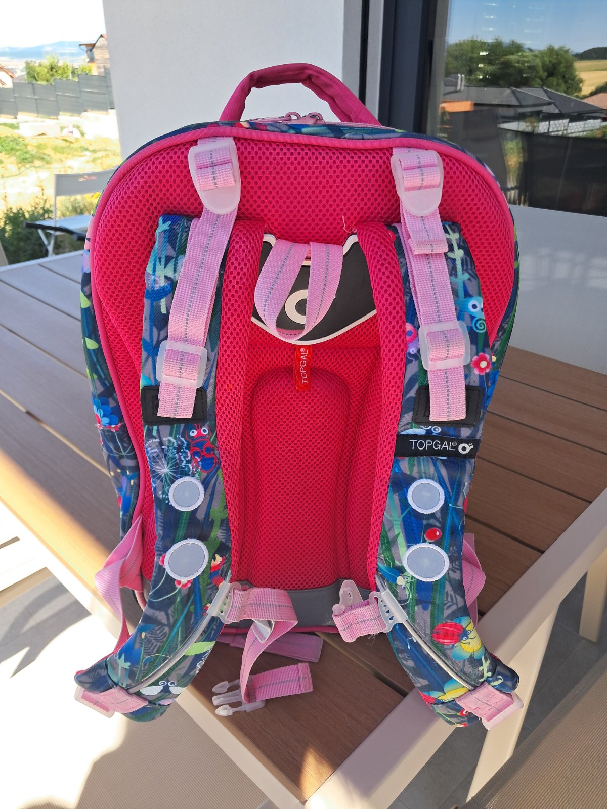Predám zachovalú školskú tašku značky Topgal. Taška je bez poškodenia, iba bežné znamky nosenia. Čistená ručne, nie v práčke. Má 4 priehradky, reflexné prvky, výstuž na chrbtovej časti ( vyberateľnú ), vrecko na fľašu a vnútorné vrecko. Dcéra ju nosila od 1. do 4.ročníka. Meníme ju iba kvôli prechodu na druhý stupeň. A zase sme kupovali Topgal :) Osobný odber Prešov alebo poštou. Poštovné 4,70 €. IBAN : SK71 8360 5207 0042 0180 9197