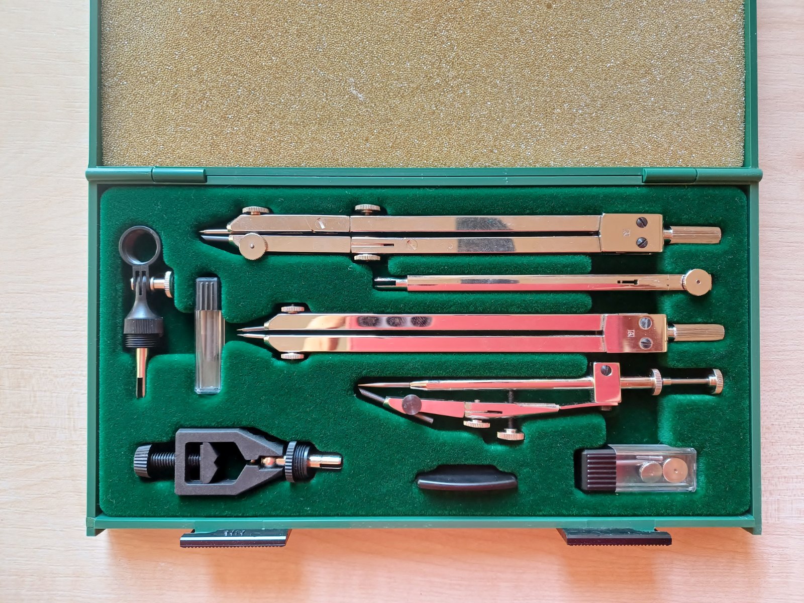 Ponúkam kvalitnú kompletnú rysovaciu sadu z r. 1985 zn. KIN Broumov CZ. Sada nebola nikdy použitá.