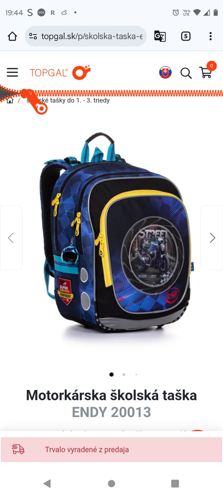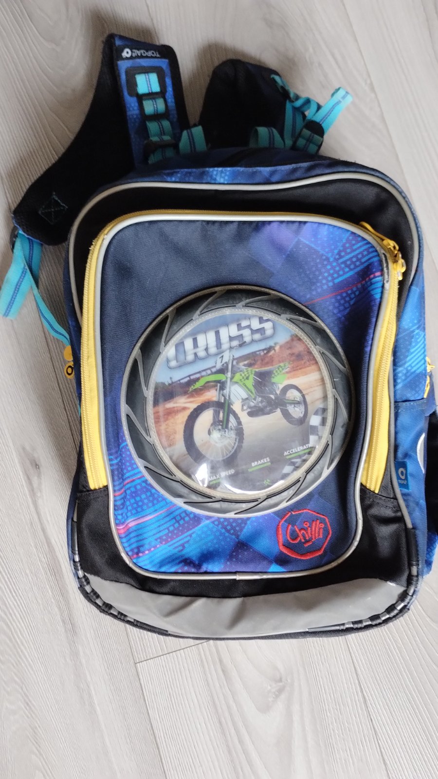 Predám školskú tašku Topgal,s motorkami , 4 vymeniteľné obrázky vpredu, nosenu, ale podľa mňa v super stave, trošku odrete reflexné pásky dookola, inak žiadne vážne poškodenia, bližší popis tašky je na foto v prílohe, cena 25 eur plus poštovné,alebo osobný odber Kysucké Nové Mesto