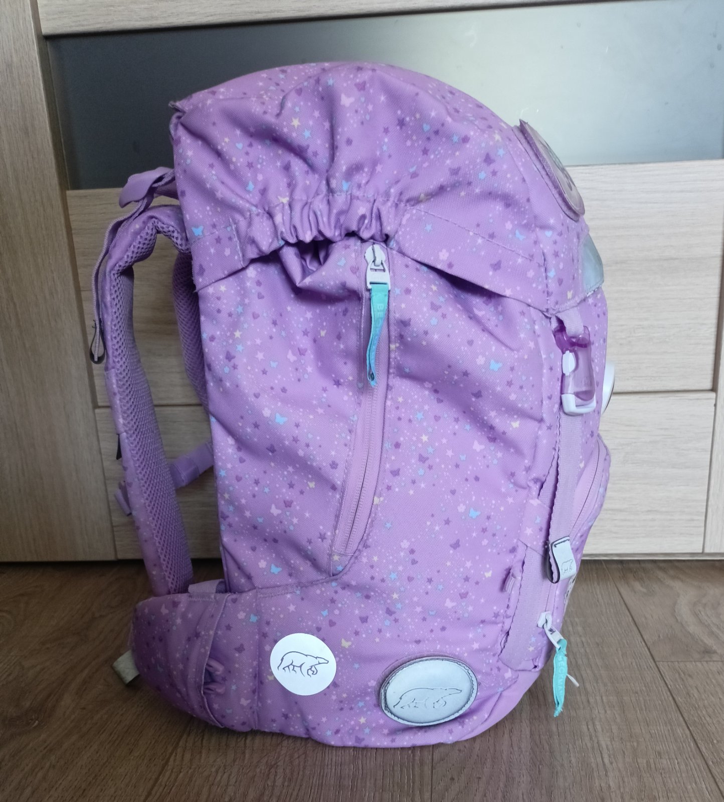 STAV: používaná, čerstvo vypratá, bez funkčných poškodení, nosenie vidno na niektorých opotrebovaných častiach, viď fotky (napr reflexný pásik). Vrátane reflexného pršiplášťa a funkčného svetielka vpredu (má vymeniteľné batérie a pred praním je možné ho dať dole). Placky má už len tie 3 na batohu.