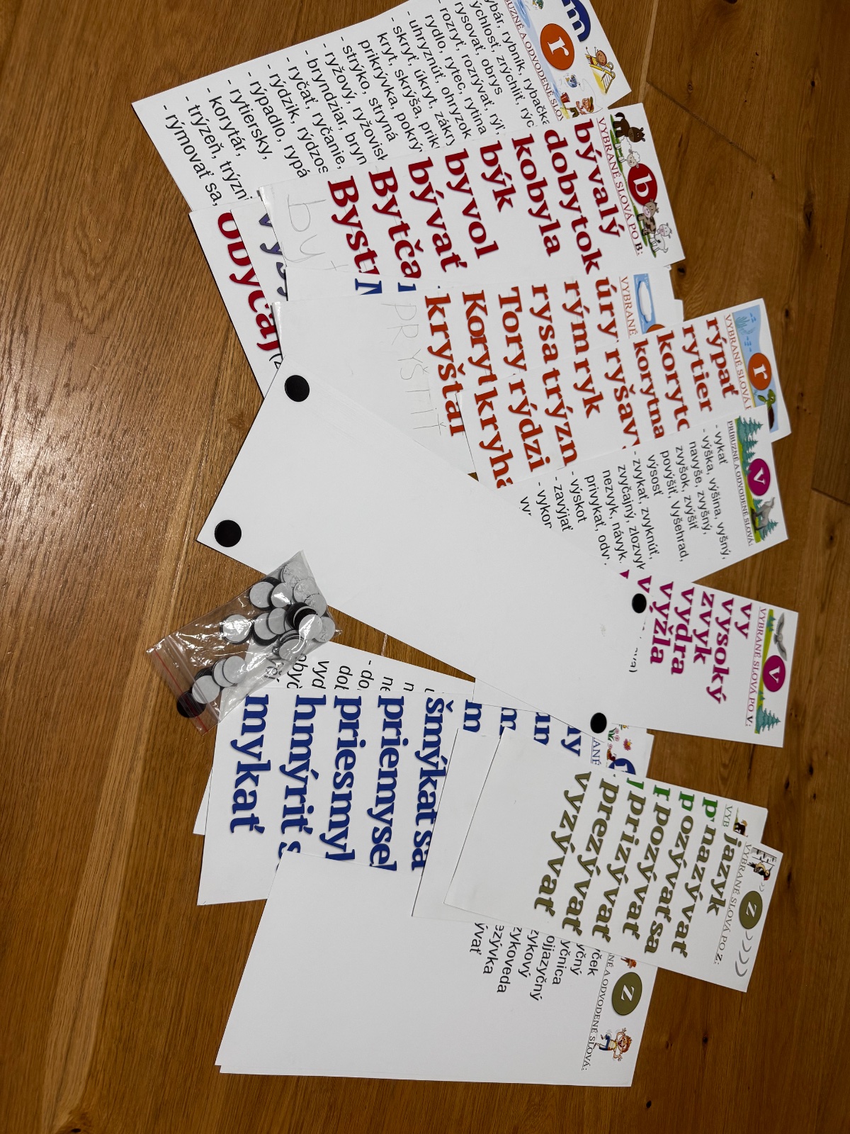 Tabulky s vybranymi slovami s magnetkami