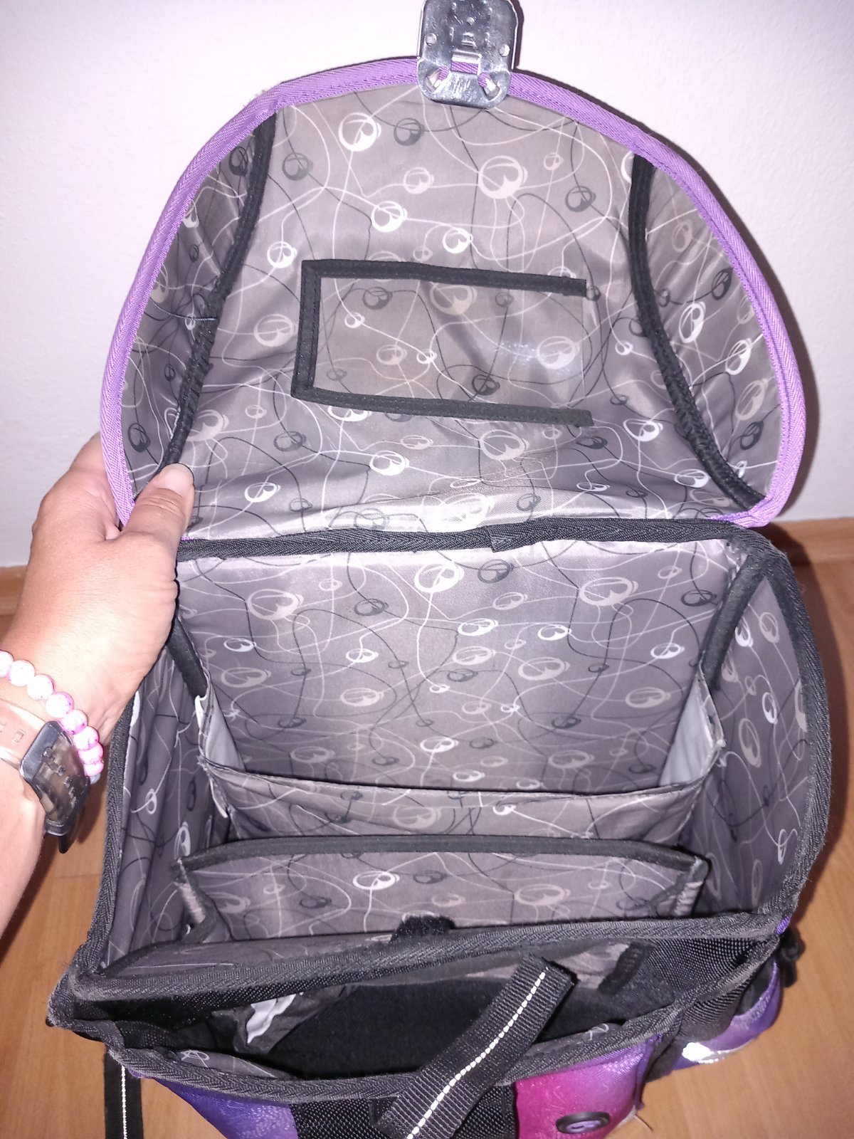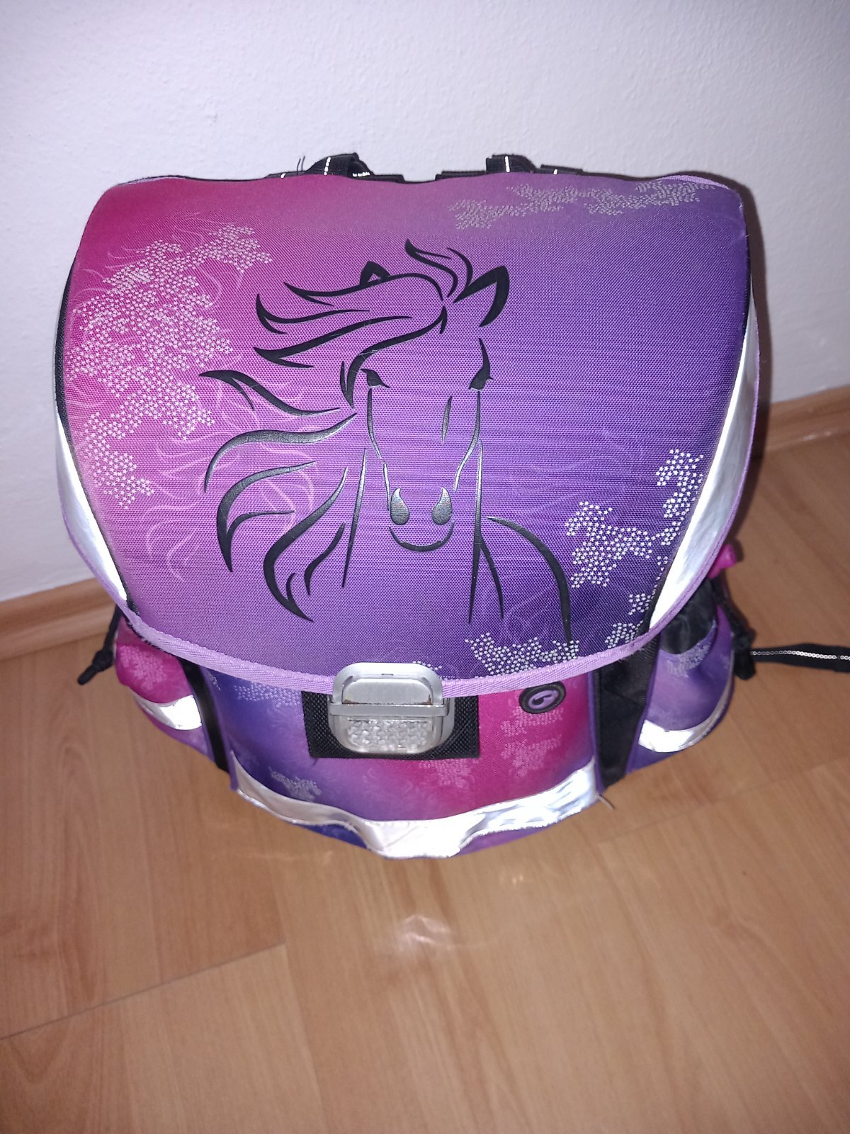 Krásna školská aktovka, nosená, ale stále v peknom stave. Vystužený chrbát. Iba pútko zlomene, a pracka ošúchaná 2 posledné foto