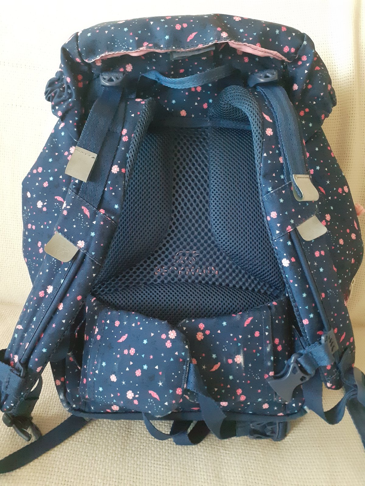 Predám školskú tašku Beckmann, je plne funkčná, v dobrom stave, odporúčam, je veľmi ergonomická, len svetielko má vybitú baterku (dá sa vymeniť) a po stranách chýbajú tzv ozdobné "placky". Súčasťou tašky je aj zabudovaný pláštik na ochranu pred dažďom. Ideálne osobny odber v Bratislave, resp. v Topoľčanoch, ale dá sa aj poslať, poštovné podľa cenníka SP.