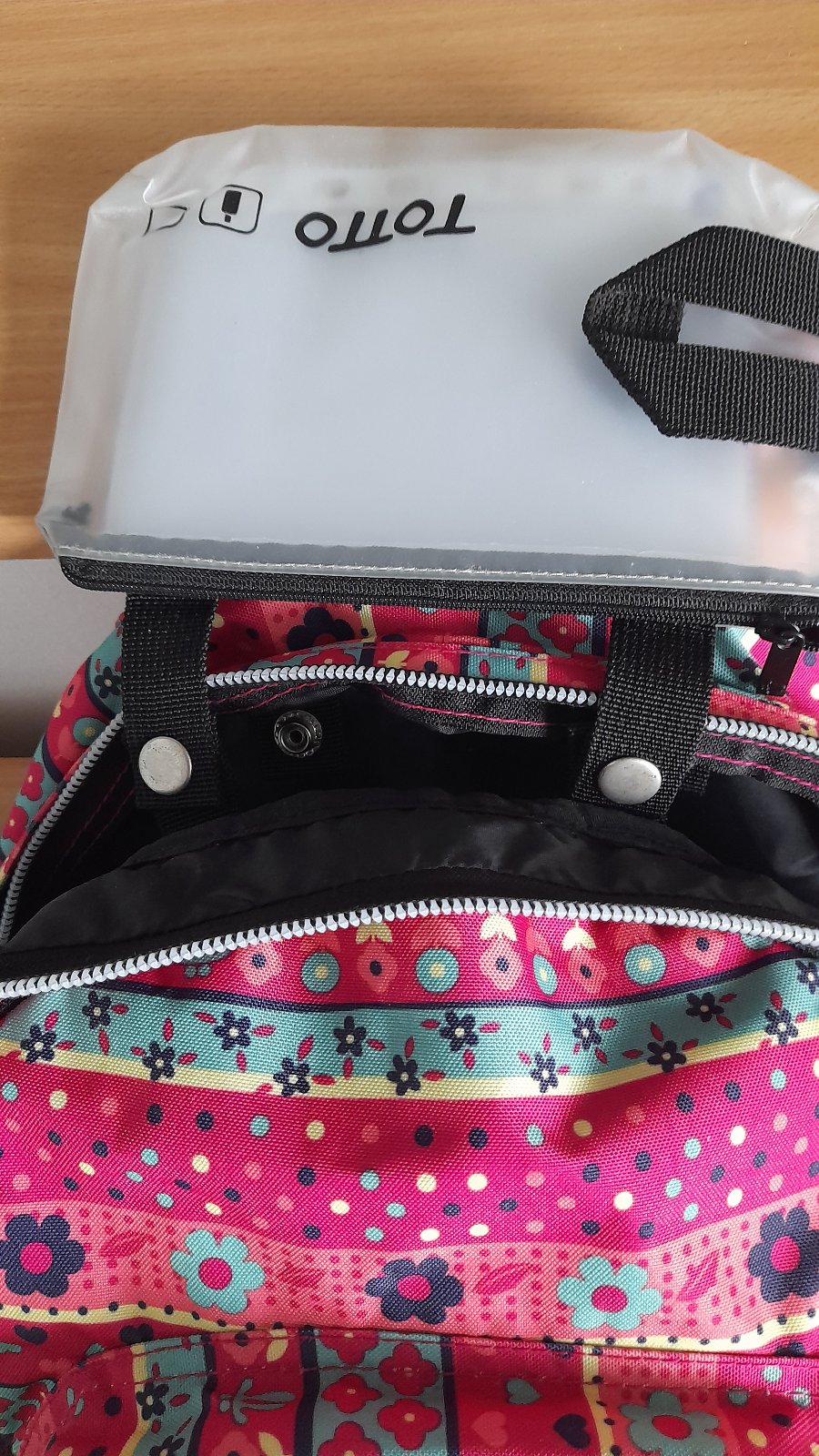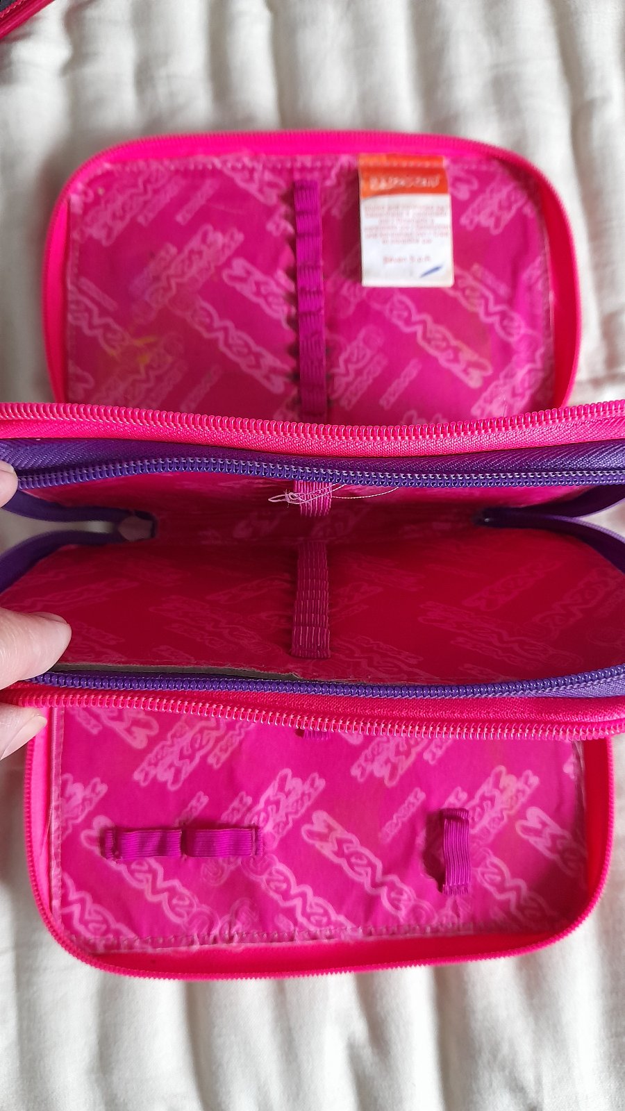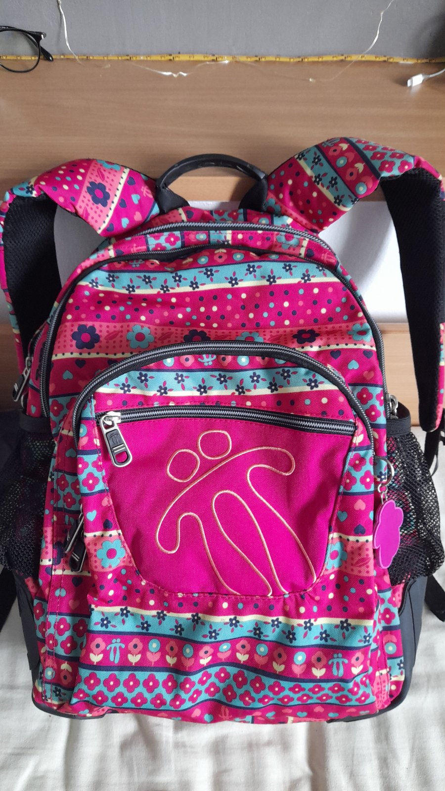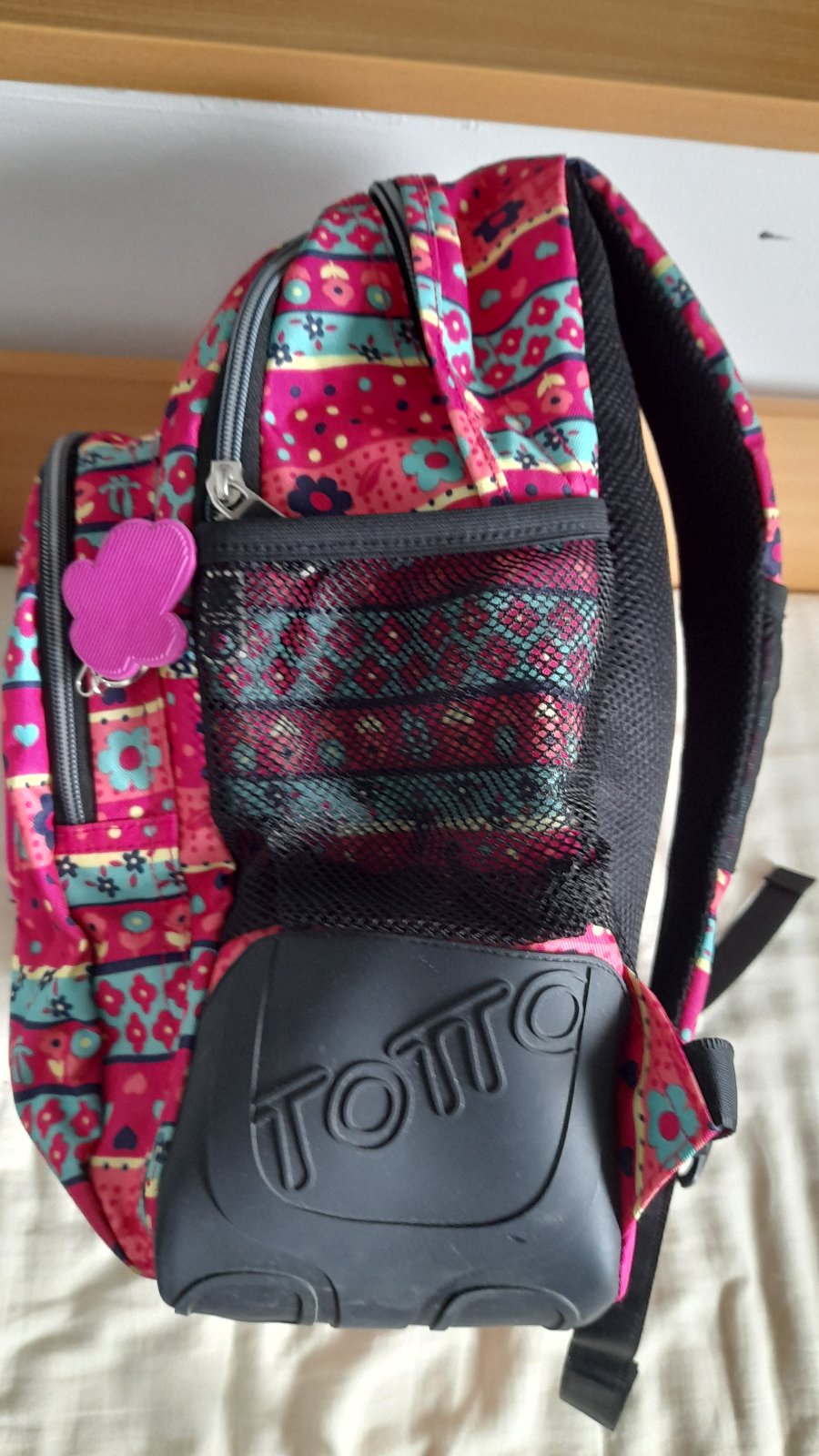 rozmery: 33x443x14 cm, objem: 20 l. Je trojkomorový a štvrtý predný vačok, má polstrované ramienka, ergonomicky tvarovaný chrbát, kvalitné zipsy, v prednom vrecku organizér, pogumované putko na zavesenie, spodné rohy pogumované, nad nimi sieťka na fľašu, vo vnútri odnímateľné vrecko na obuv a odnímateľné hygienické vrecko. K nemu 2 zachovalé peračníky zadarmo.
