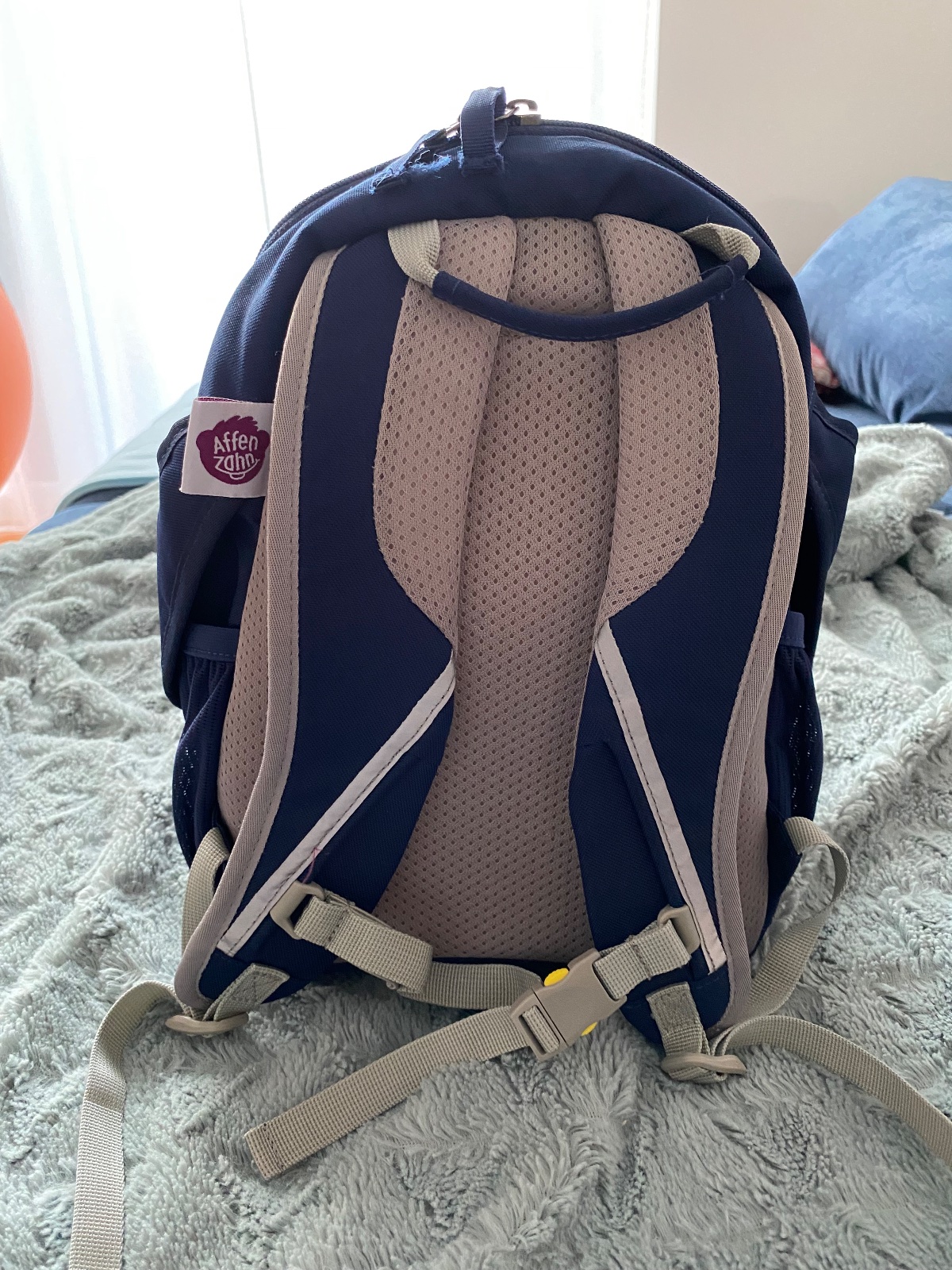 Predam minimalne pouzivany batoztek znamrj znacky Affenzahn. Vsetko funkcne - zips, suchy zips, spony, gymicky nevytahane. Pri foteni som nasla maly dierku na bocnom vacku, co nijak neovplyvbuje funkcnost.