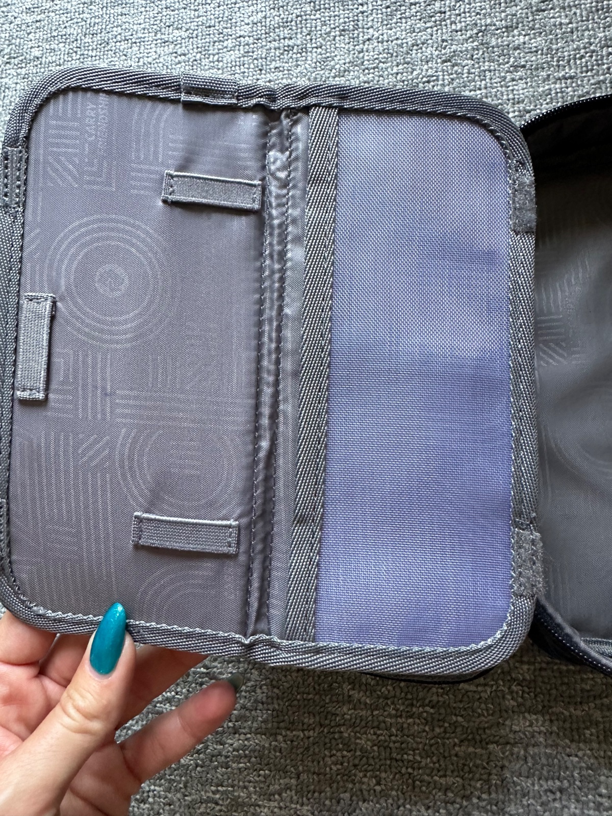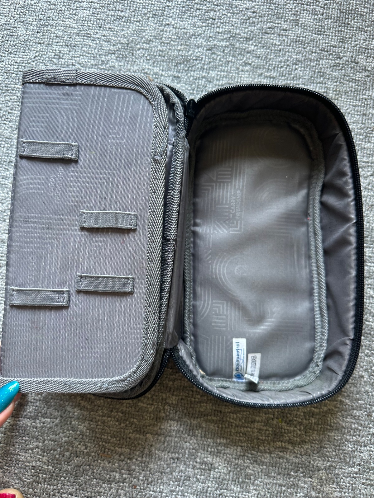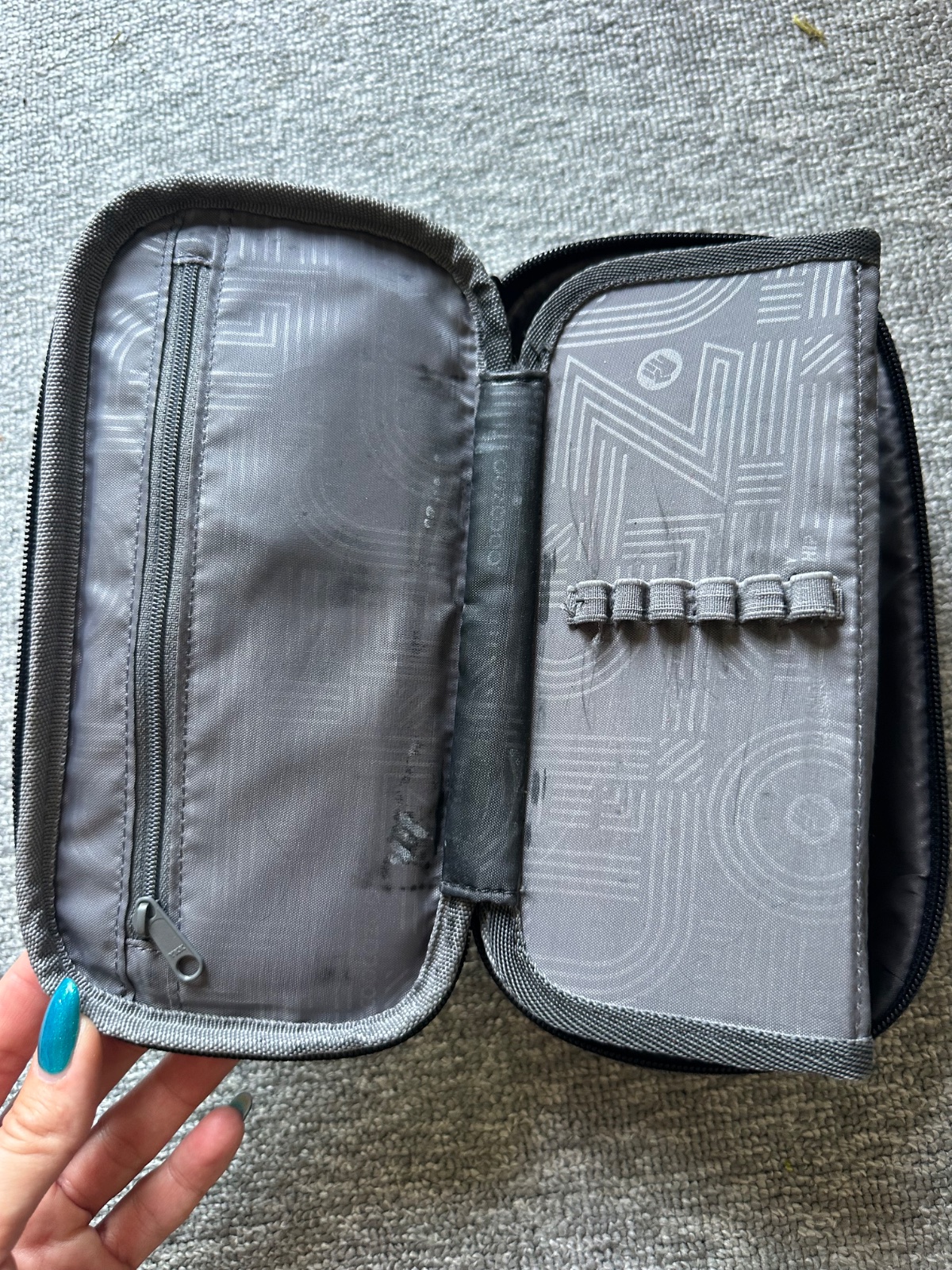 Priestorný peračník na perá, ceruzky, pastelky, pravítka, uhlomer, gumu a ďalšie školské potřeby. Peračník obsahuje vrecko na zips ve veku peračníka, gumičky na zasunutie 6 ceruziek alebo pasteliek, ďalších 7 väčších pútok pre príslušenstvo.