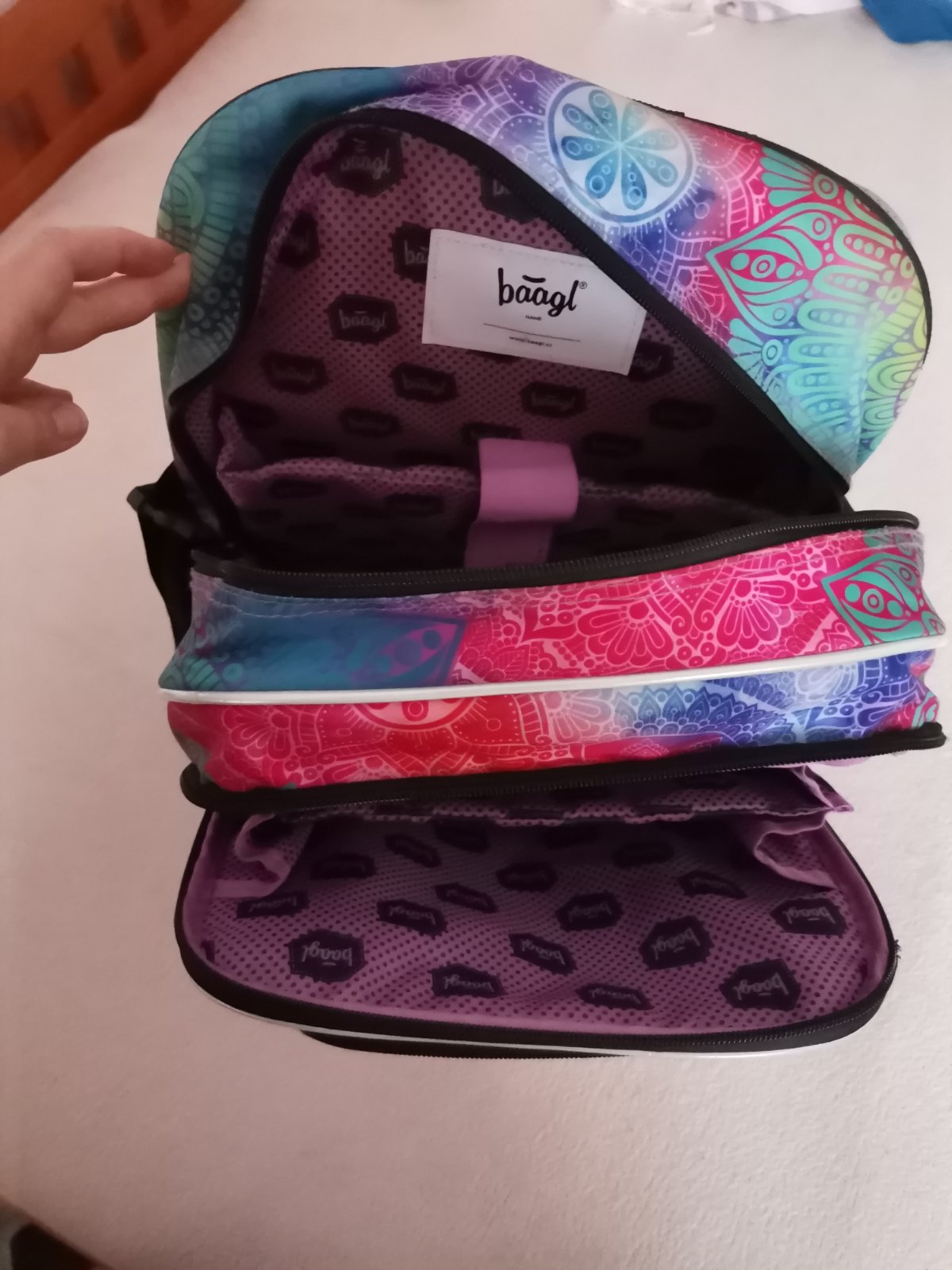 Málo používaný školský batoh značky Baagl Cubic mandala. Veľmi zachovalý, bez poškodenia.