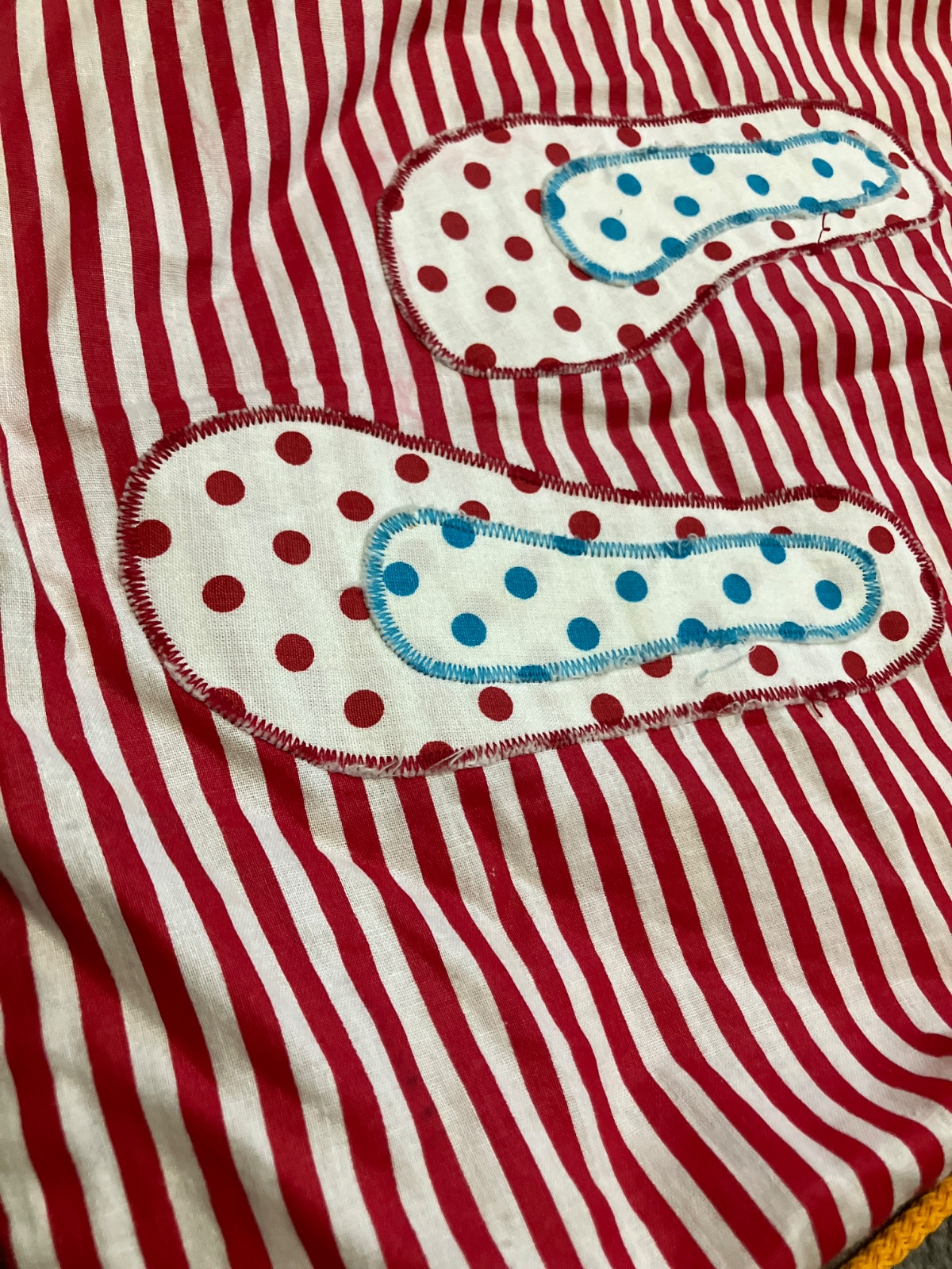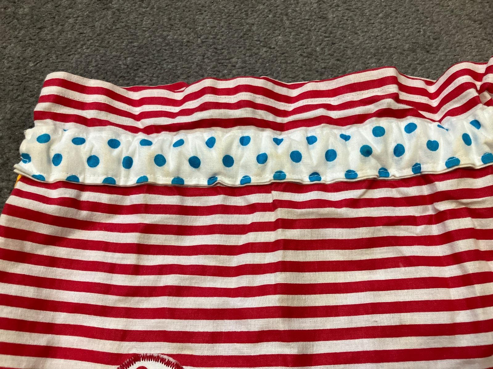 Noseny. Bez poskodeni. Jedina nedokonalost je ze vrchny lem chytil zltu farbu od snurky, slabo viditelne, pisem pre poriadok
