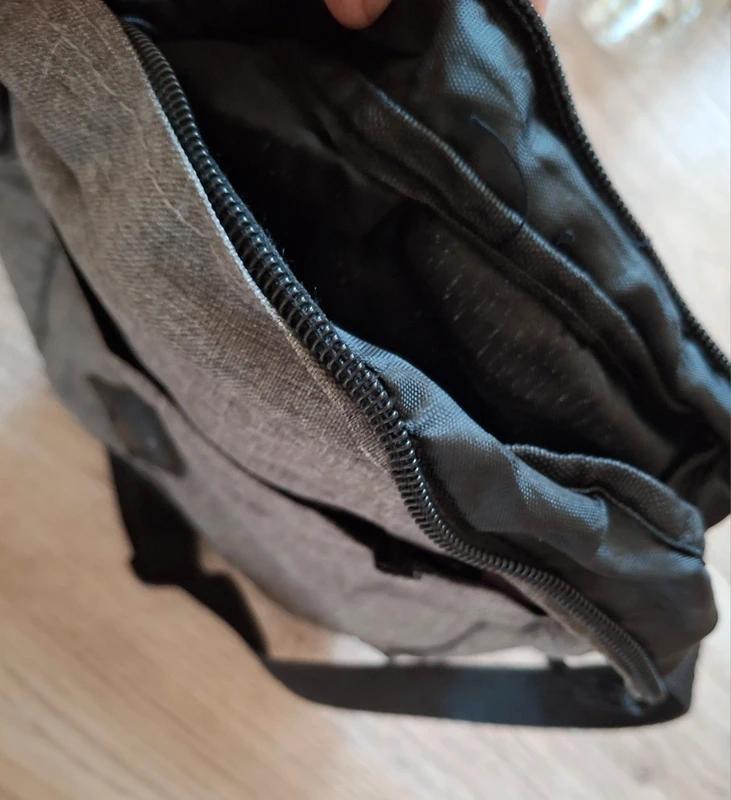 Sivá taška/vrecko na plece s posuvným nastaviteľným popruhom 20x26cm, tiež bez chyby.