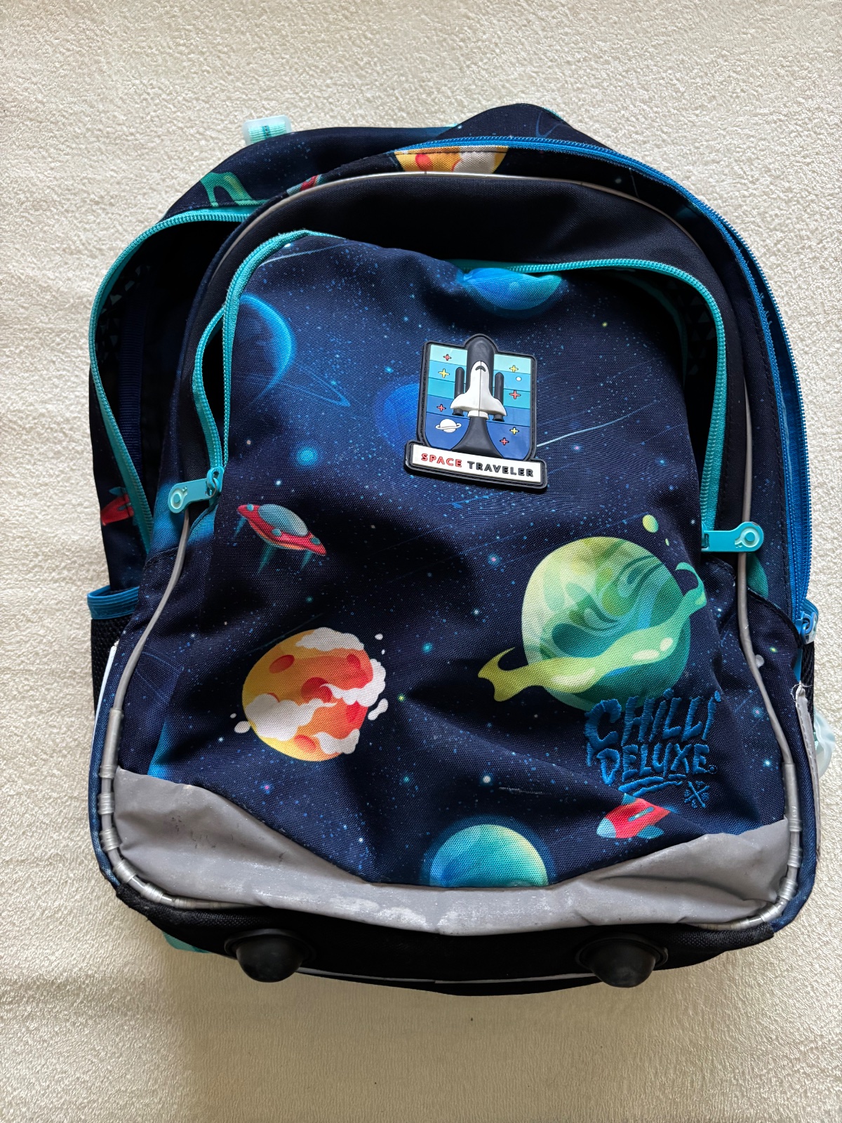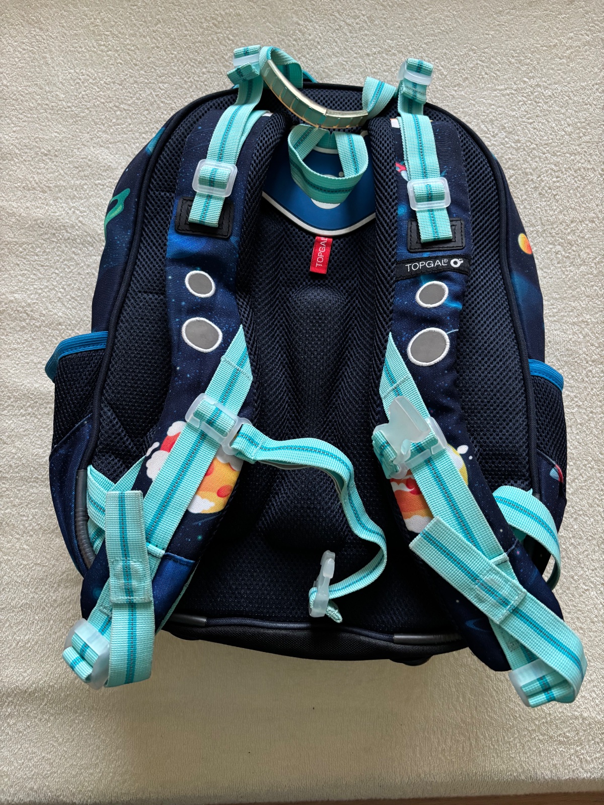 Predam kvalitnu Topgal skolsku tasku s vesmirnym motivom. Nosena 3 roky, ale stale je v dobrom stave (farby nevybletnute, vnutro ako nove, zvonku je na spodnej casti odlupnute trochu z jednej vrstvy materialu).Cena je s postovnym. Na dobierku neposielam.