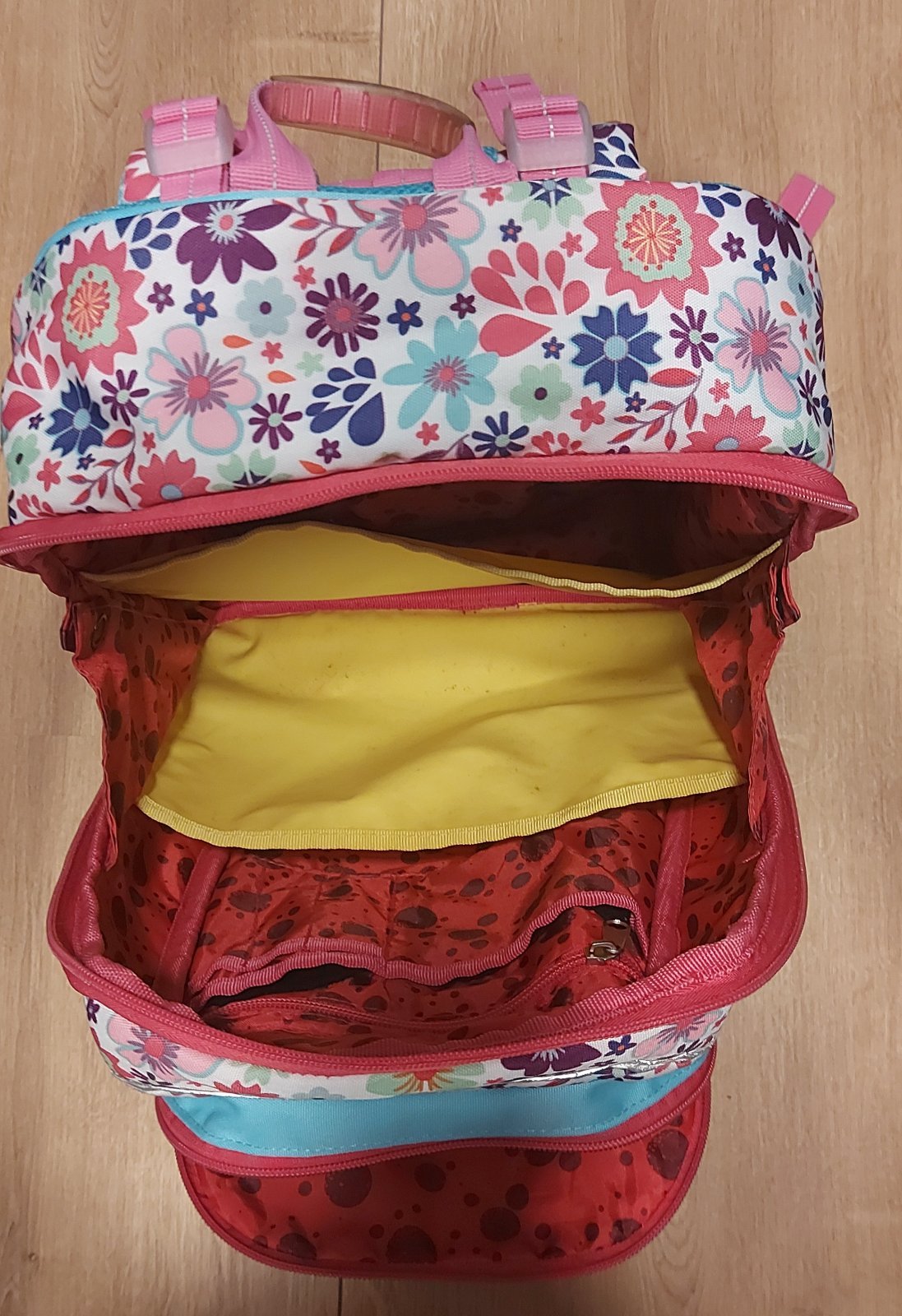 vnútorný organizér v hornej prednej kapse s dvomi kapsičkami na zipskvalitné uško s plastovou rukoväťou k přenášaniu v rukeputko k zaväseniu tašky na háčik na lavicipolohovateľný hrudný pásik ramenných popruhov zaisťujúci rozloženie váhy a pohodlné nosenieodolné dno batohu z pevného materiálu TOPDURA (testovaný v Inštitúte pre testovanie a certifikáciu v Zlíne) s plastovými nôžkami je naviac spevnené vnútornými výstuhami