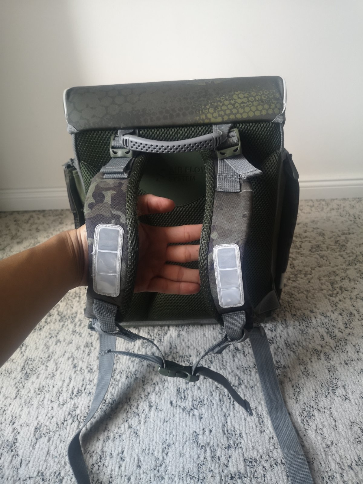 Vnútro pevné, prehľadné, prváčik pekne všetko nájde bez zbytočného zipsovania.