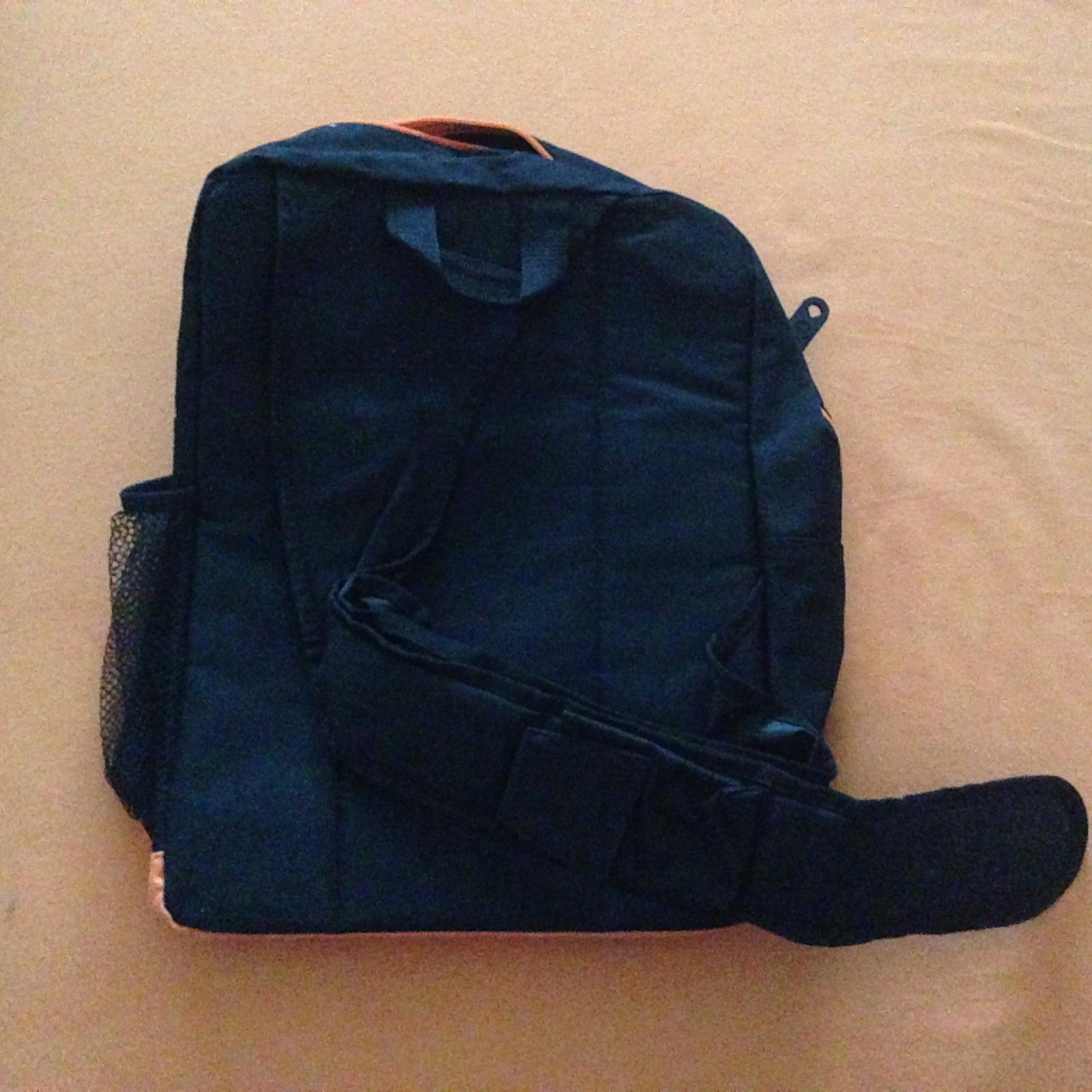 Par krat vyuzity batoh na dovolenke čierno oranžový na jeden popruh/sikmo cez rameno.Cisty Rozmery v37,s 29,h 14. Rozdeleny na 2 priecinky,zboku na flasu