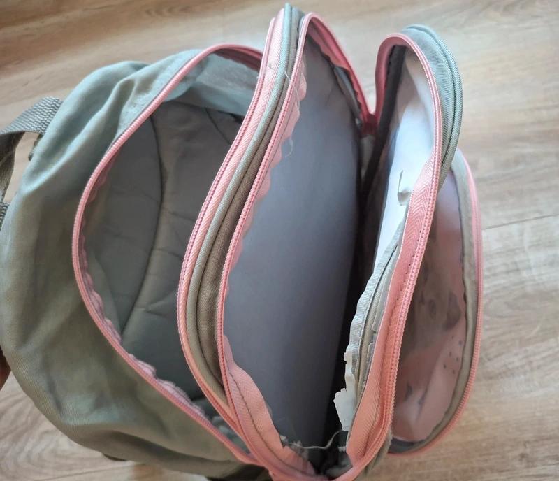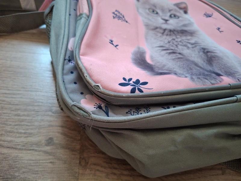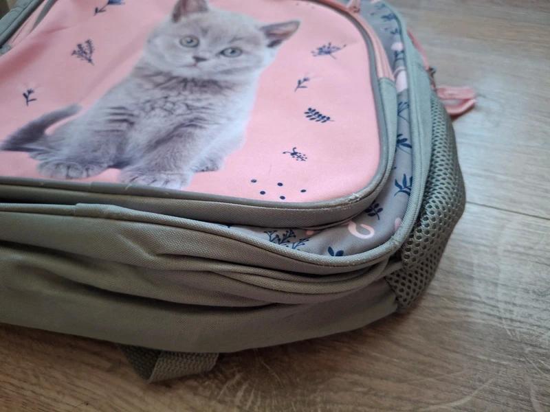 Batoh s mačičkou 30x40cm je vo veľkom vnútornom vrecku a zvonku na spodnej časti rochu zodratý, inak ok, určite ešte poslúži.