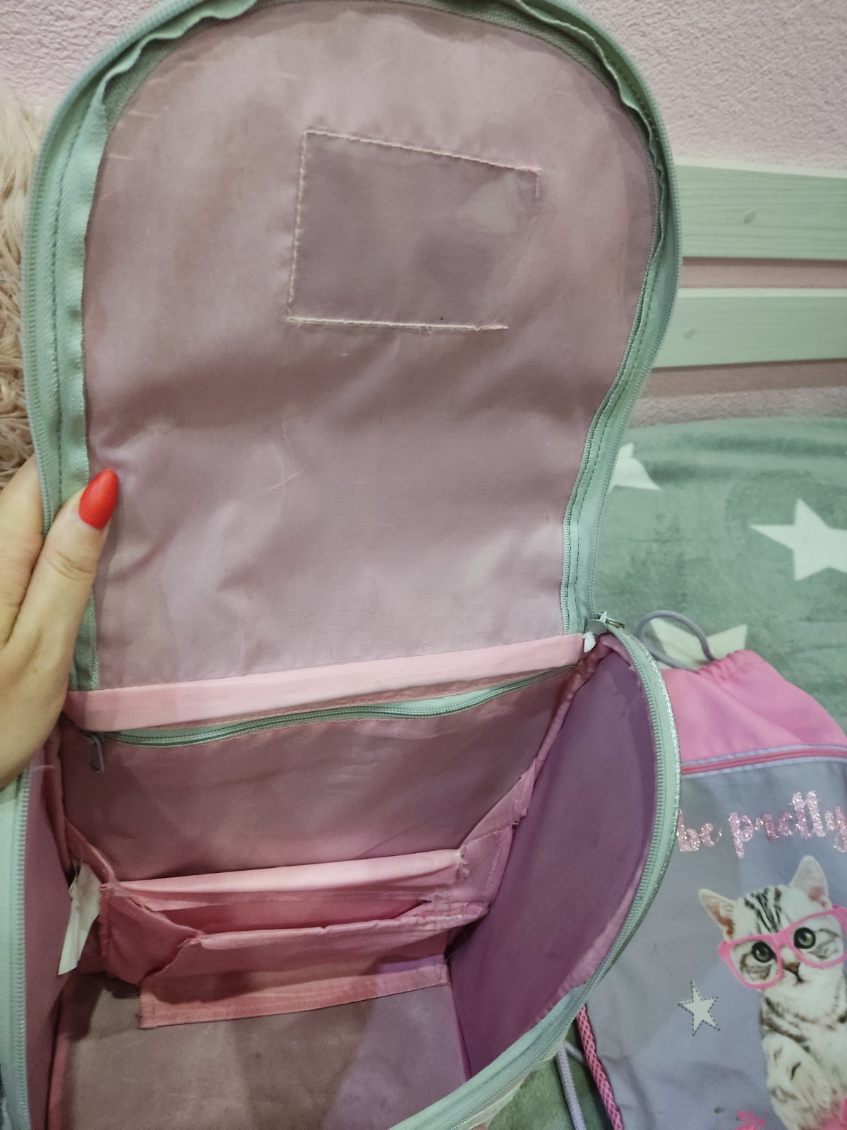 Predám nosenu aktovku dva roky jedna vada je že rúčka praskla ale pod tým plastom drží normálne je k nej vak na telesnú výchovu aj peracnik,flasa na šnúrku,dóza na desiatu...