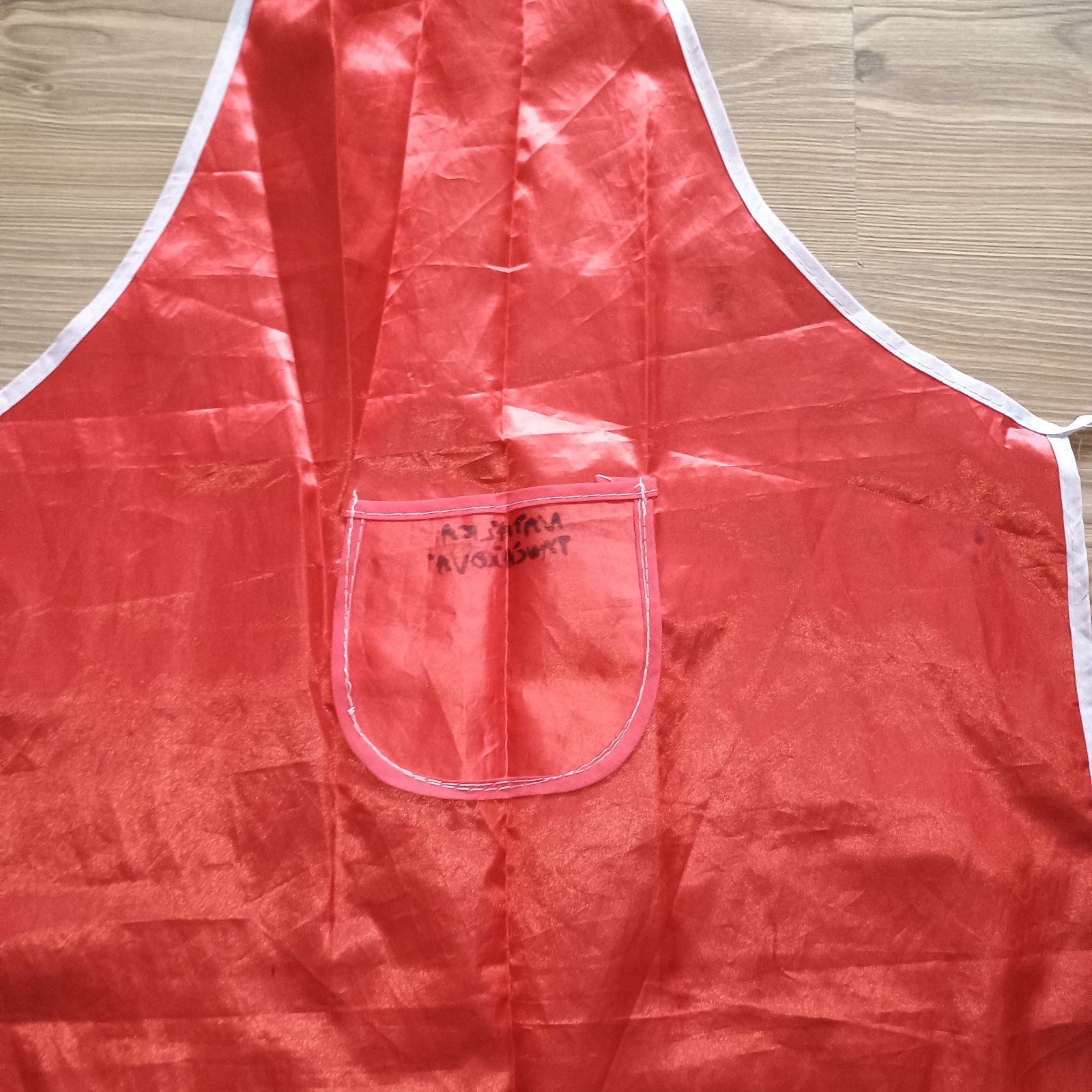 Zastera na ochranu oblečenia na výtvarnú výchovu pre 1.stupen. pouzivane ale este posluzi. Na vrecku je napísané meno, ale da sa prepísať alebo preciarknut.