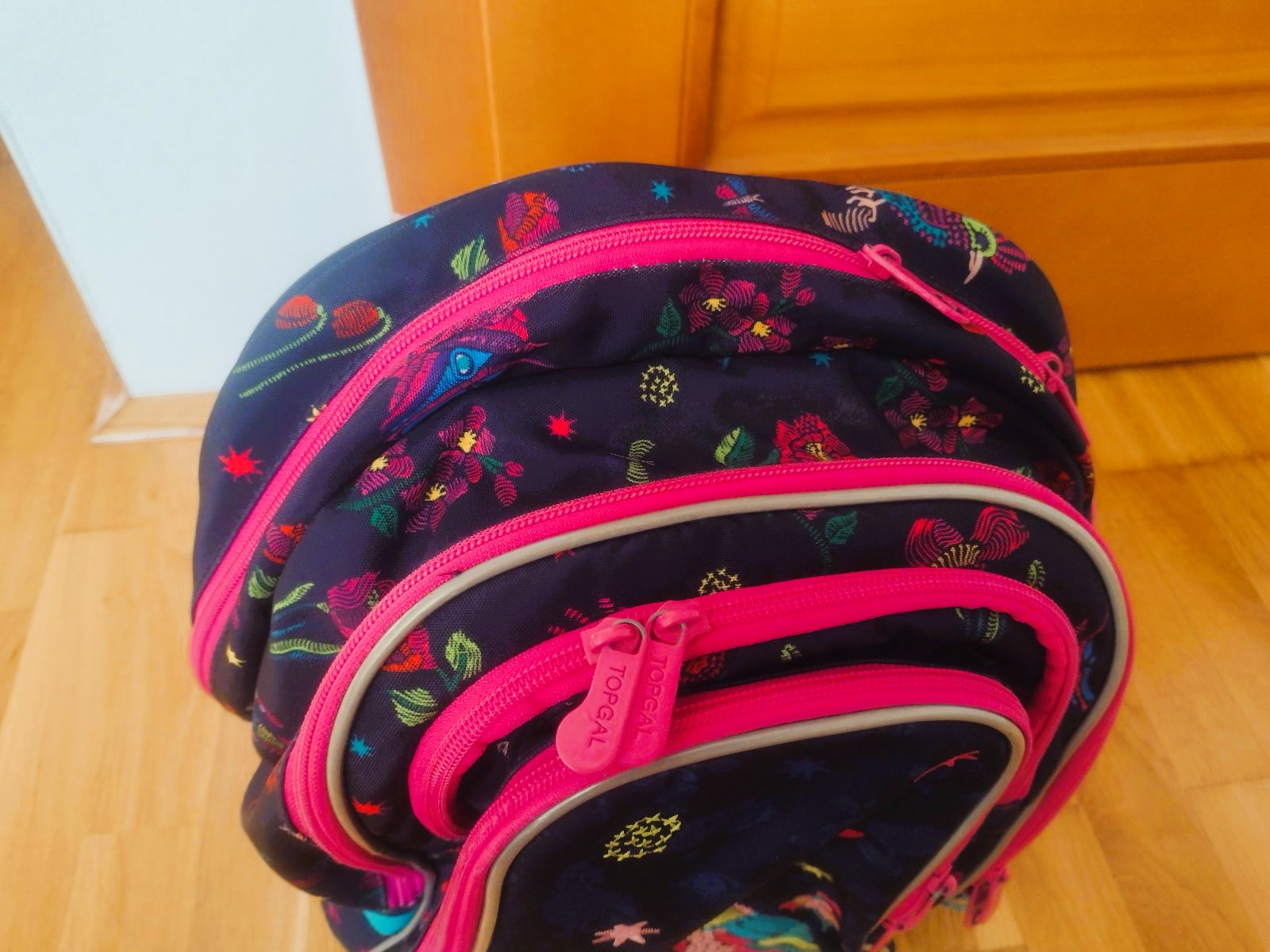 Predám školský batoh Topgal používaný skoro 4 roky. Vidieť známky používania (viď foto), ale zipsy sú v poriadku. Ešte urobí službu. Je vhodný pre 1.-4. ročník.