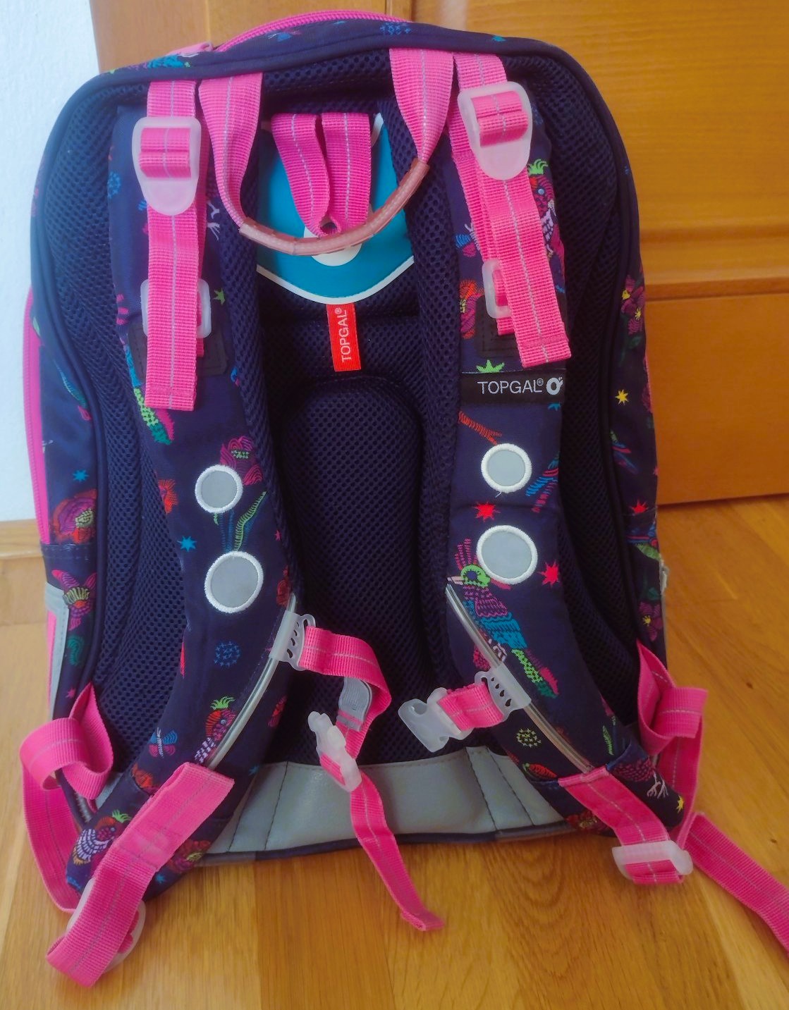 Kredám krásnu školskú zn. TOPGAL. My kupujeme len túto značku a sme velmi spokojní. Taška je vhodná pre 1-4 ročník ZŠ. Je velmi kvalitná, plne funkčná. Odporúčam. PC: 59,90 € cena symbolická