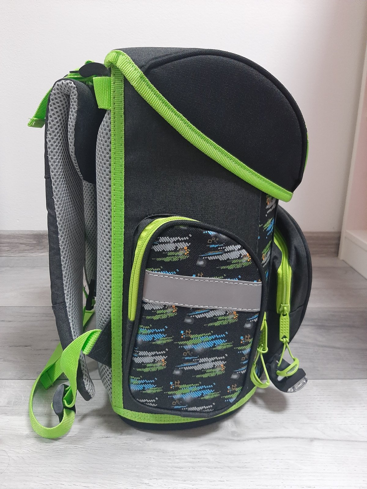 - Aktovka je vybavená elastickým svietidlom, ktoré zaisťuje lepšiu viditeľnosť a bezpečnosť školáka. Vďaka jednoduchému uchopeniu možno baterku zavesiť kdekoľvek.