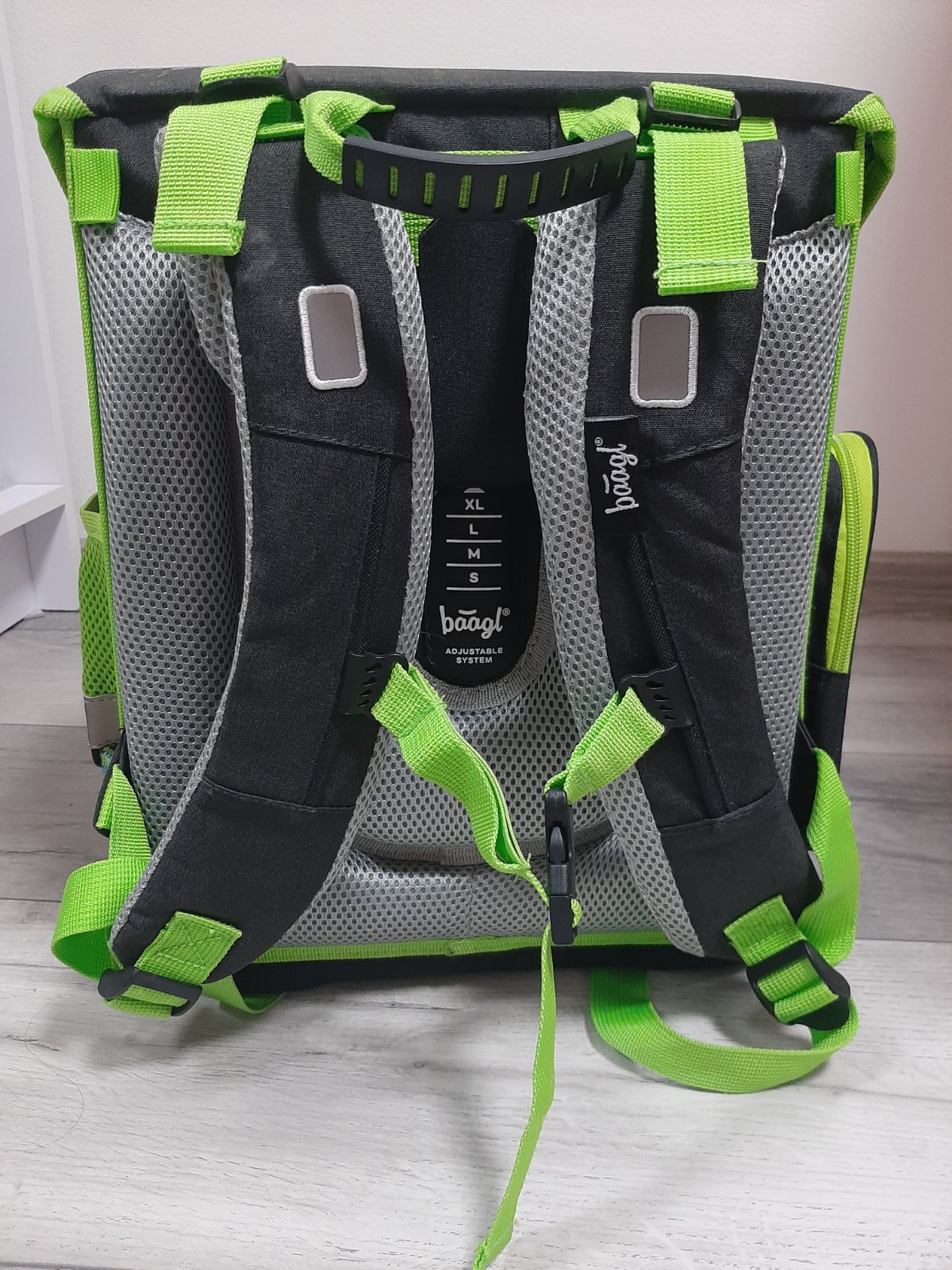 - BAAGL ADJUSTABLE SYSTEM posuvný chrbtový systém umožňuje nastaviť optimálnu polohu popruhov podľa výšky dieťaťa.