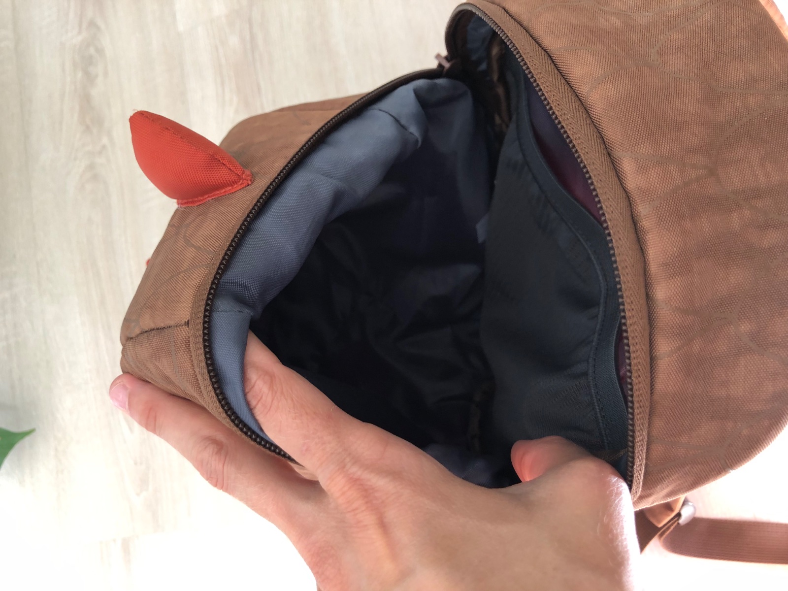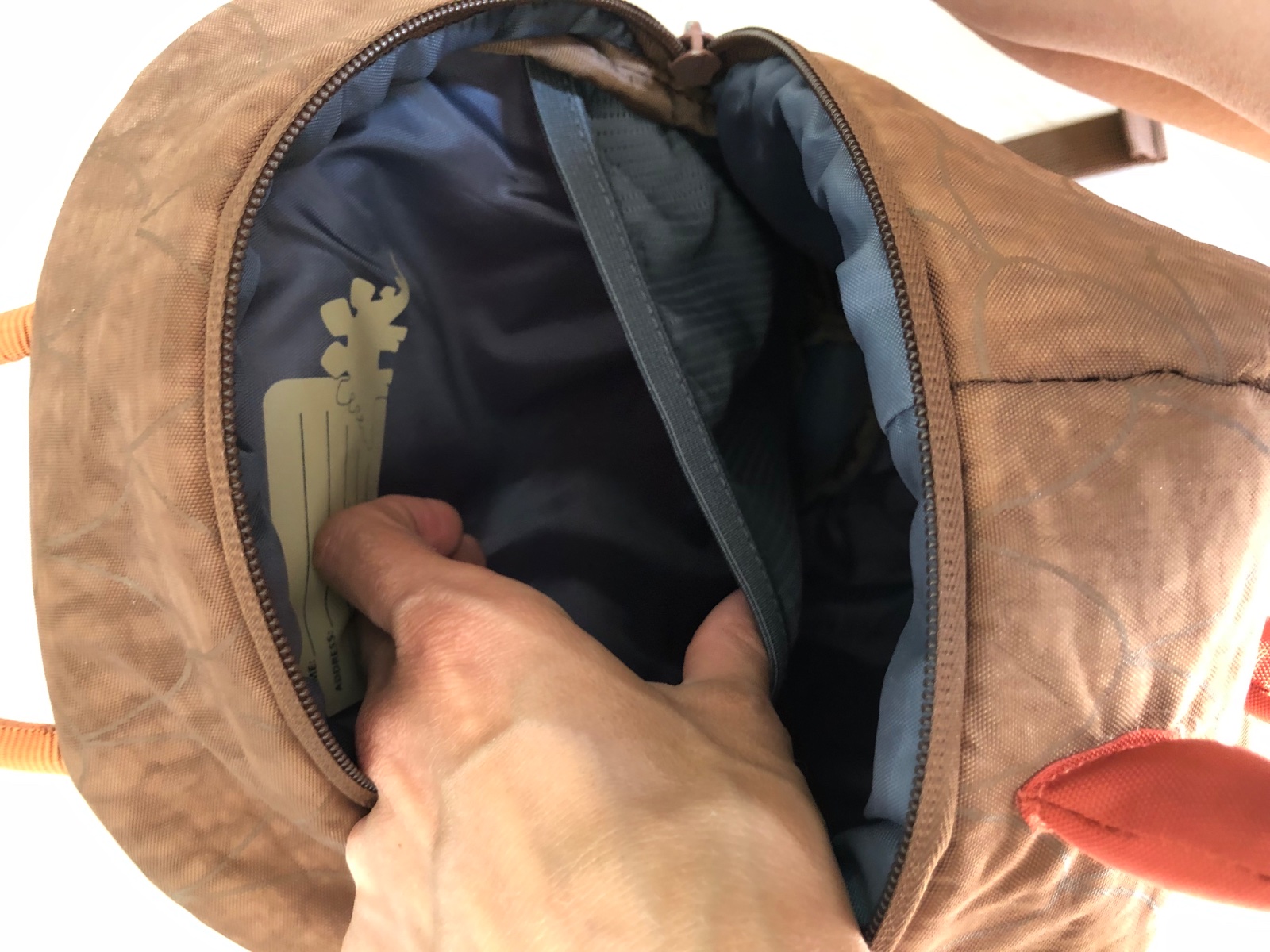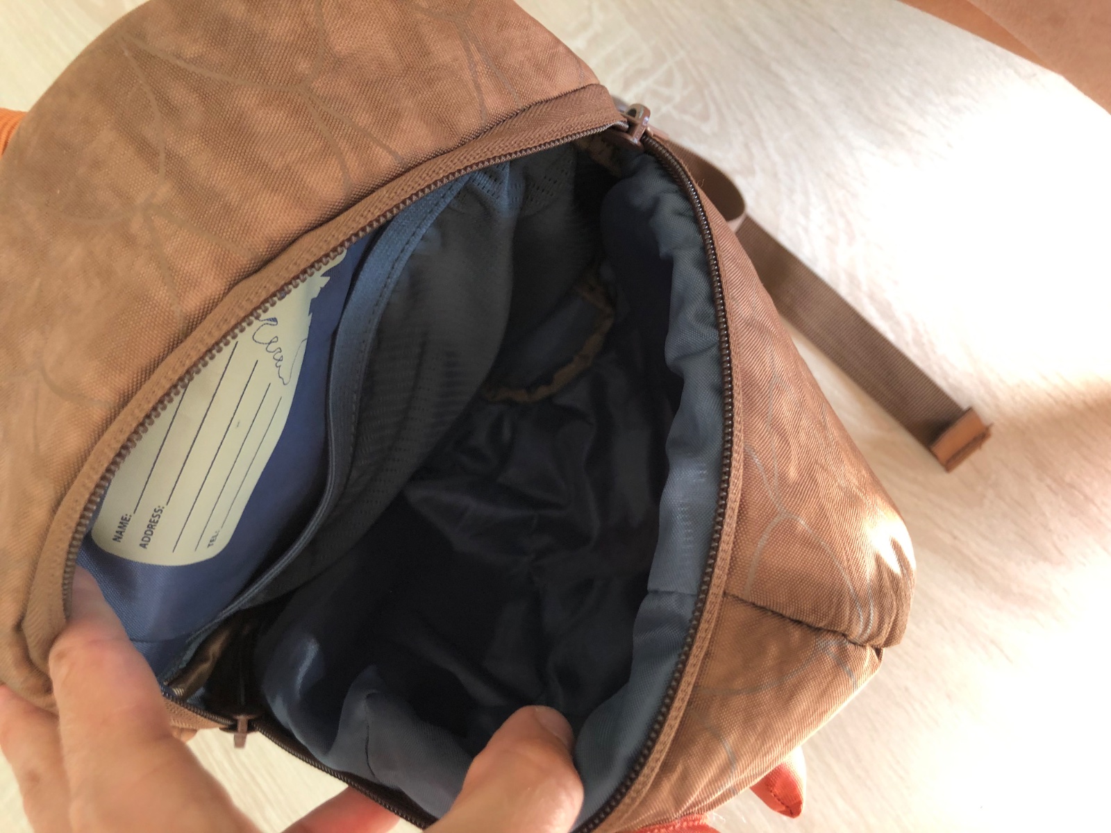 pevnejsia chrbtova strana, vo vnutri je jedno velke vrecko a jedno male sietkovane