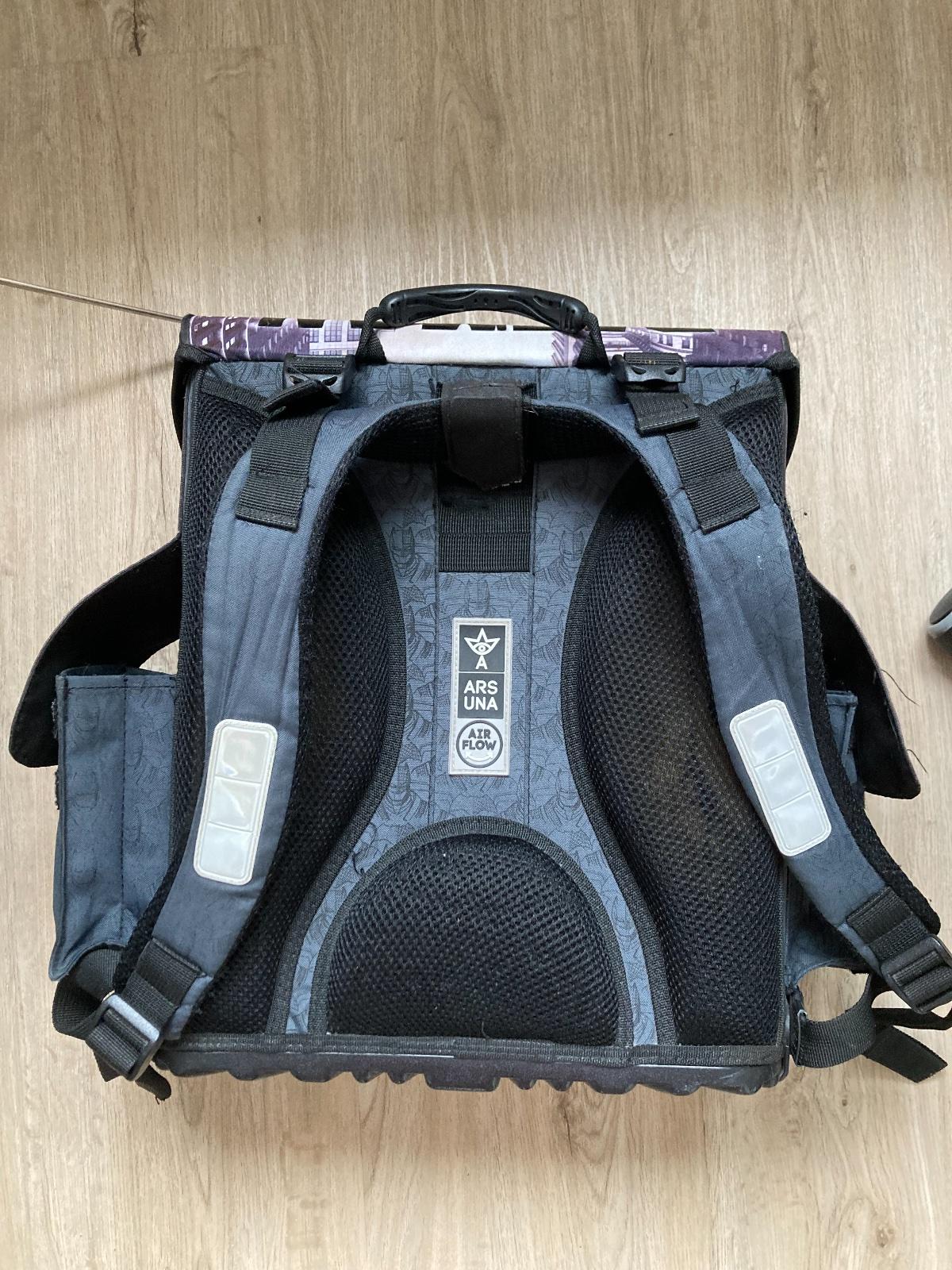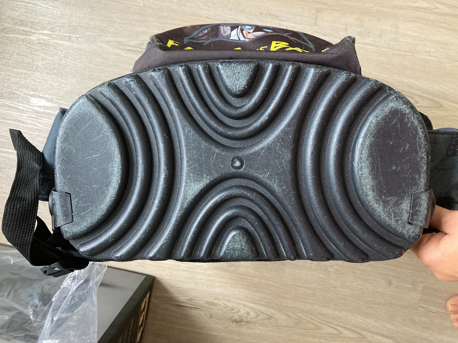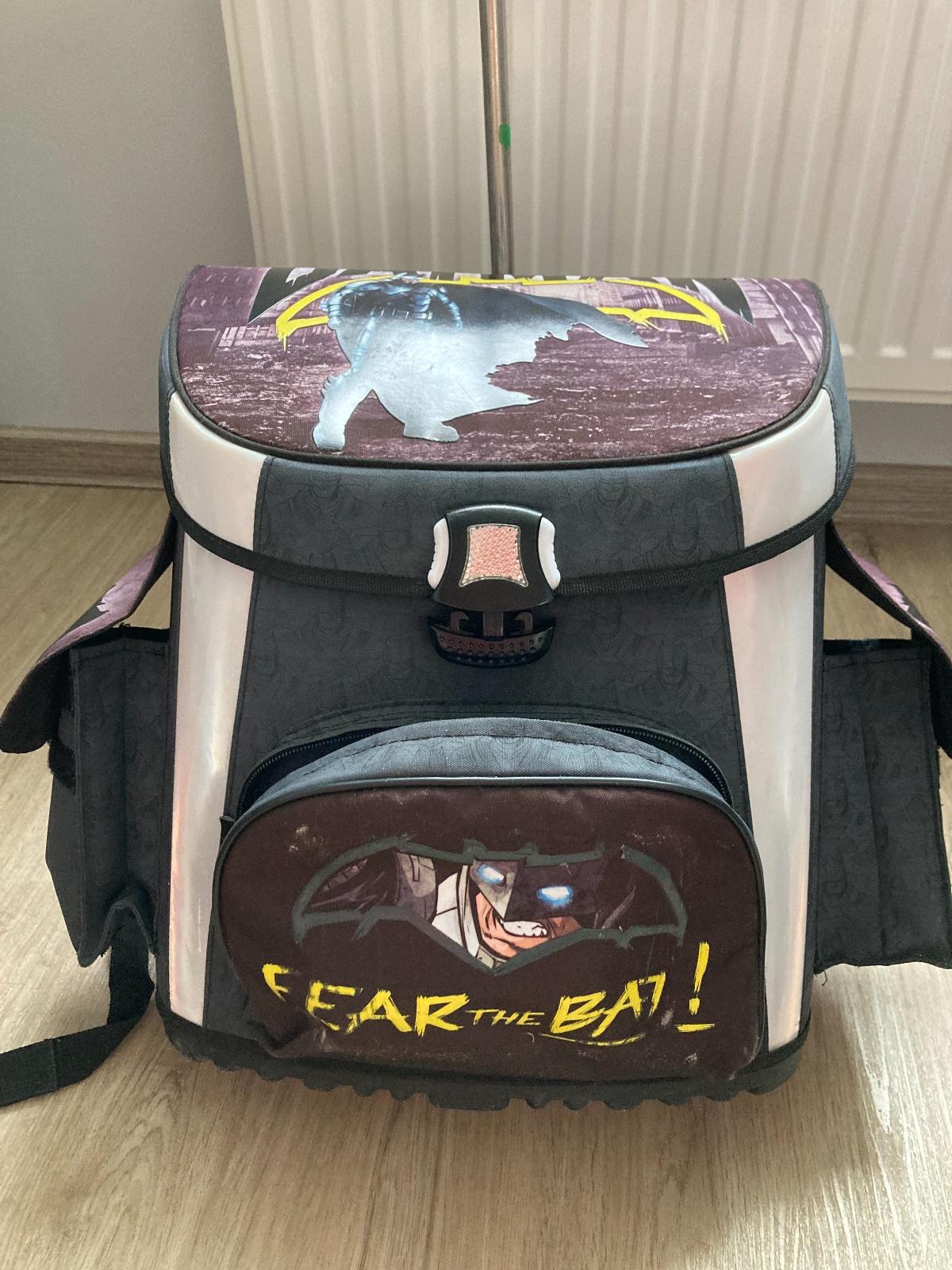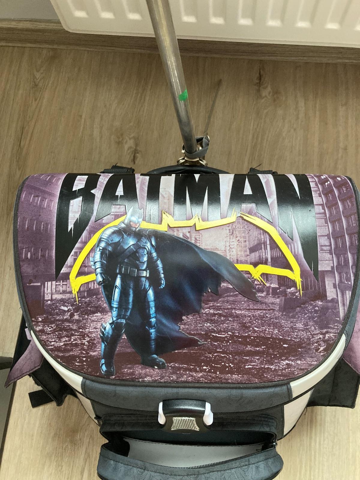 Školská taška Batman. Pevná konštrukcia. Používali sme 4 roky. Mierne ošúchaný obrázok na vrecku na desiatový box. Inak žiadne vady. Nastaviteľné popruhy. Mäkké penové opierky na chrbte. Vo vnútri jeden predel na dosky a malé vrecko na karty. Stále v super stave.
