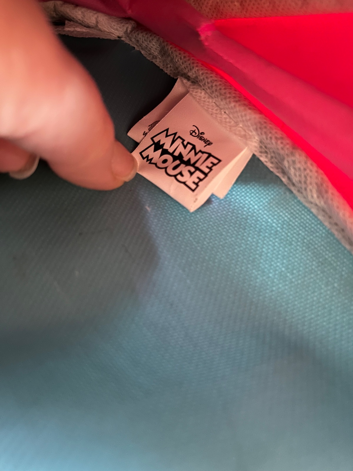 Vpredu je veľký motív Minnie Mouse, je 3D plastický priestorový vypuklý.