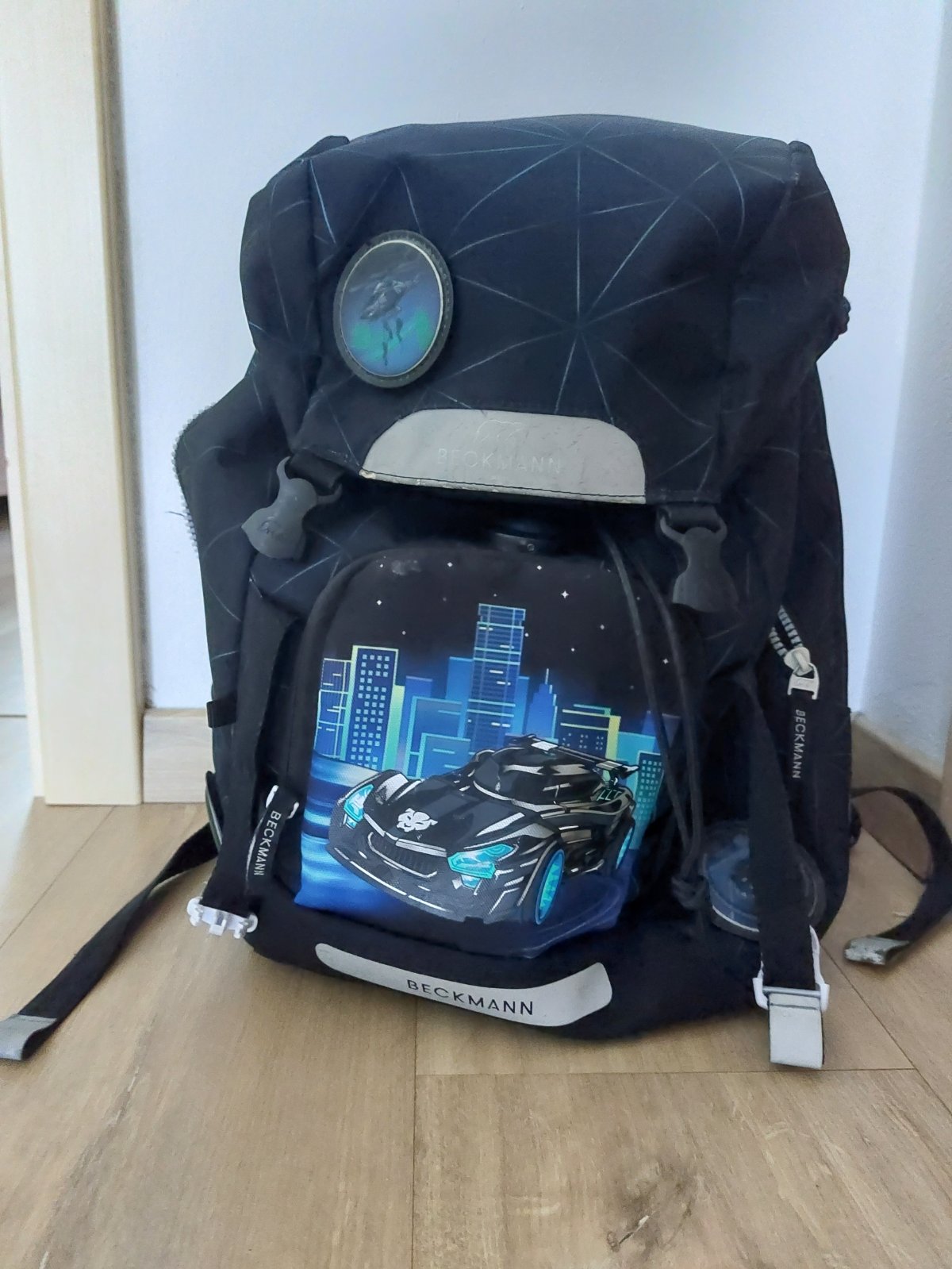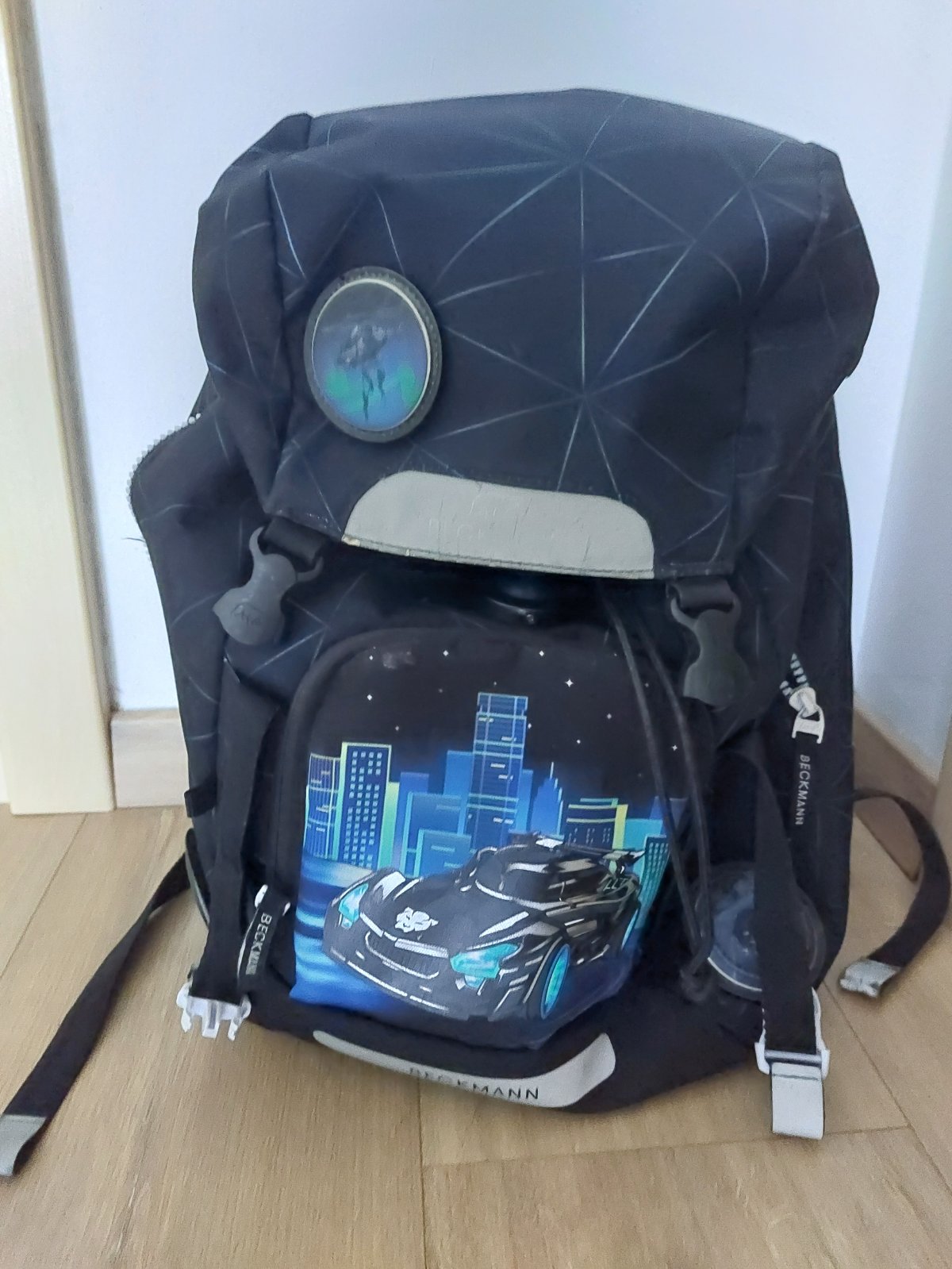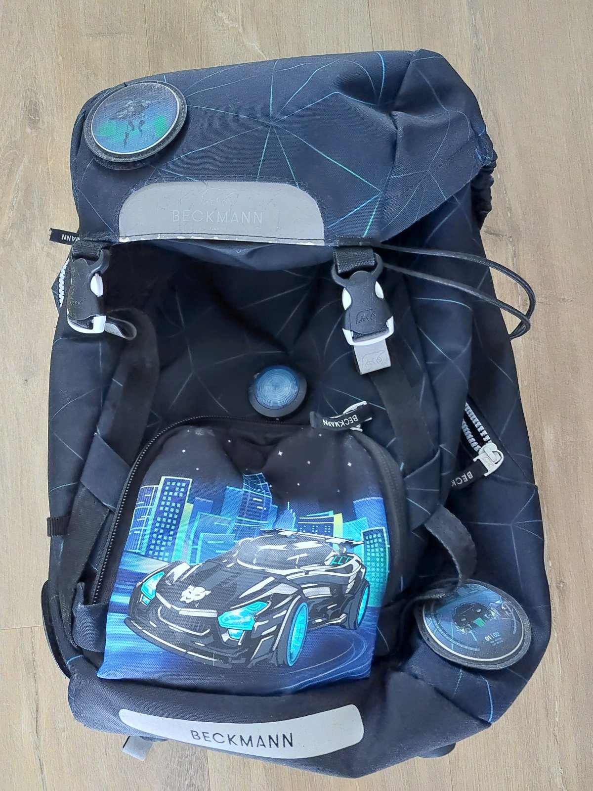Taška Beckman pre menšie, útlejšie deti, ale veľmi spratná. Známky nosenia. Používaná 2 školské roky. Súčasťou je aj reflexný pršiplášť. Pôvodná cena 120e
