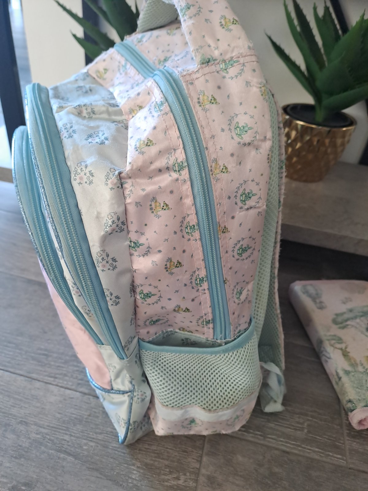 Stav aky na fotke, ma len na ramene roztrhane,inač nema žiadne poškodenia,je krásna aj peračník zaujímavý,jemne trblietavý..ešte pekne poslúži..preto zohladnena cena.