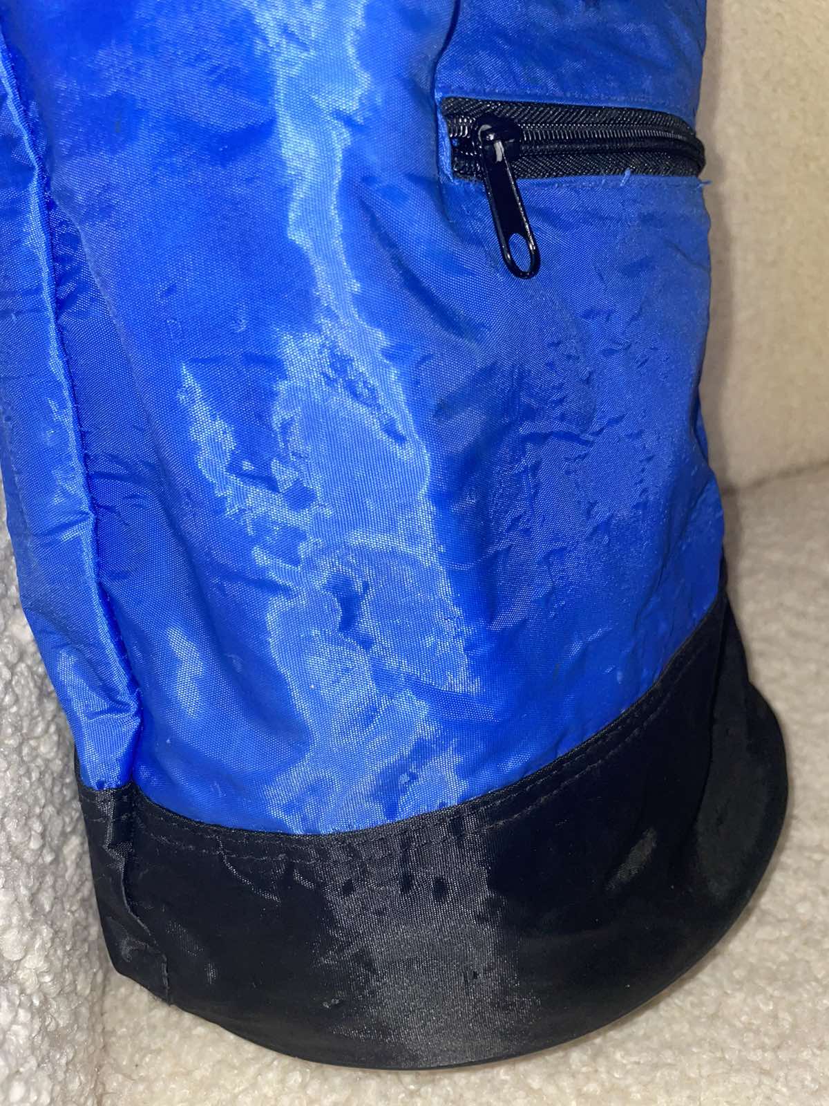 Sustiak, vyprala som ho a materiál sa miestami zvlnil, inak nepoškodený, priemer 24 cm, výška 45 cm
