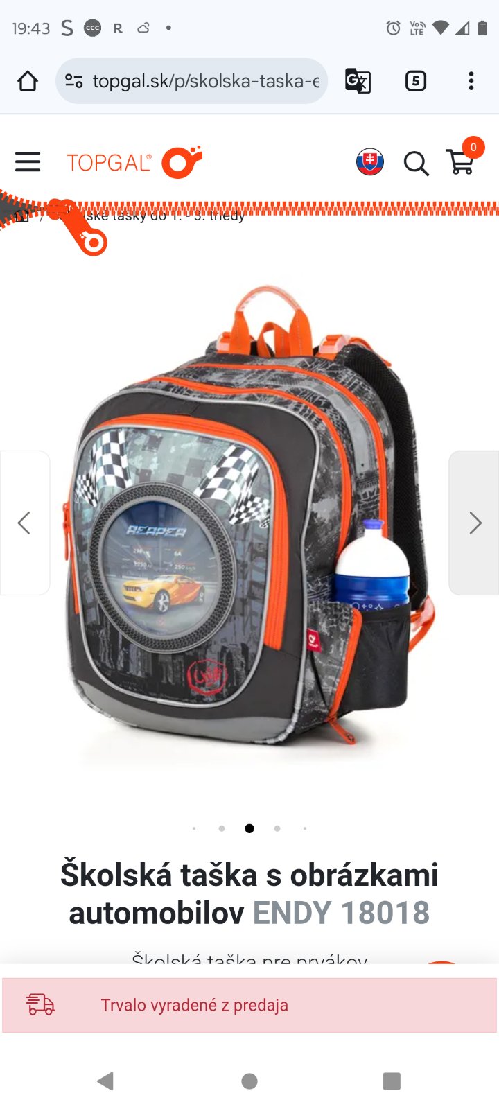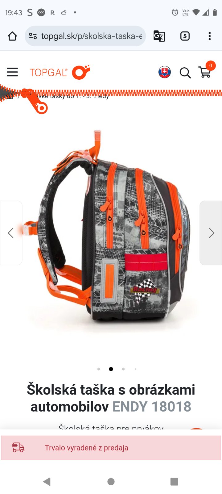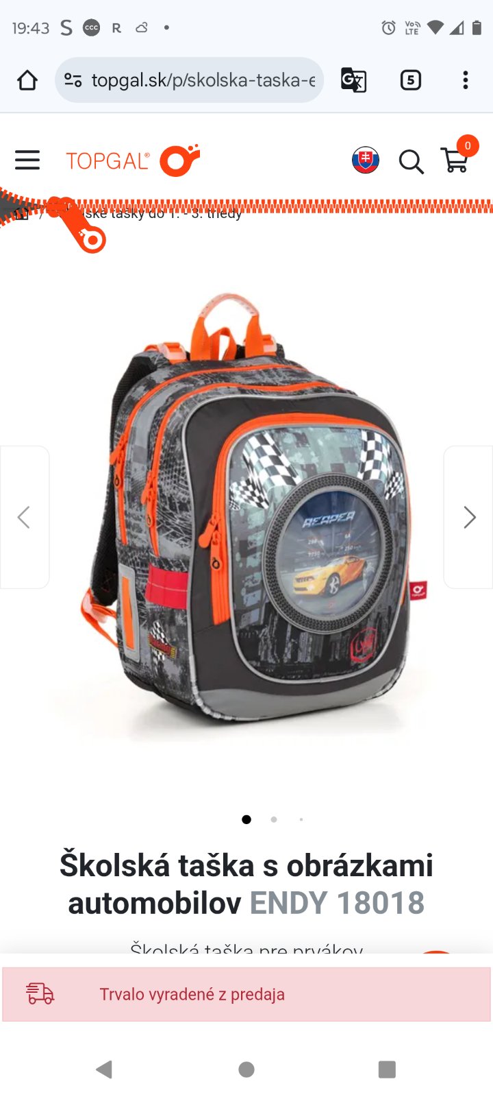 Predám školskú tašku Topgal, s obrázkami áut vpredu, ktoré sa dajú vymeniť, nosena, poznat na výzore, ale stále nositelna, chýba jeden bežec, odfotené, vnútri sieťka na kľúče roztrhnuta,čo my sme vôbec nevyužívali, inak žiadne vážne poškodenia, len ošúchané reflexné pásky, tomu sa však predísť nedá, ľahká, veľká, zmestí sa všetko , PC 80 eur, teraz 10 eur plus poštovné, osobný odber Kysucké Nové Mesto