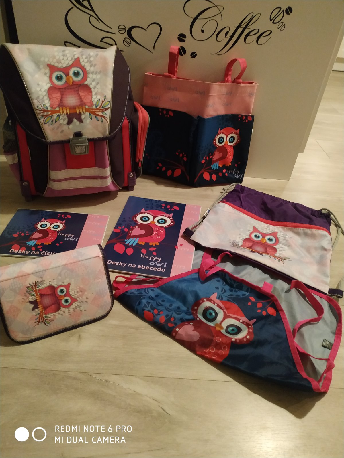 Školský set 7dielny značky EMIPO. Set obsahuje: školská taška, peračník, hygienické vrecúško, vrecko na telocvik, zástera na výtvarnú, doska na abecedu, doska na číslice. Taška je priestranná. Peračník a zástera na výtvarnú sú vyditelne používané , na taške je na kapsičke na fľašu malá dierka v sieťke. Ostatné príslušenstvo je vo veľmi dobrom stave.