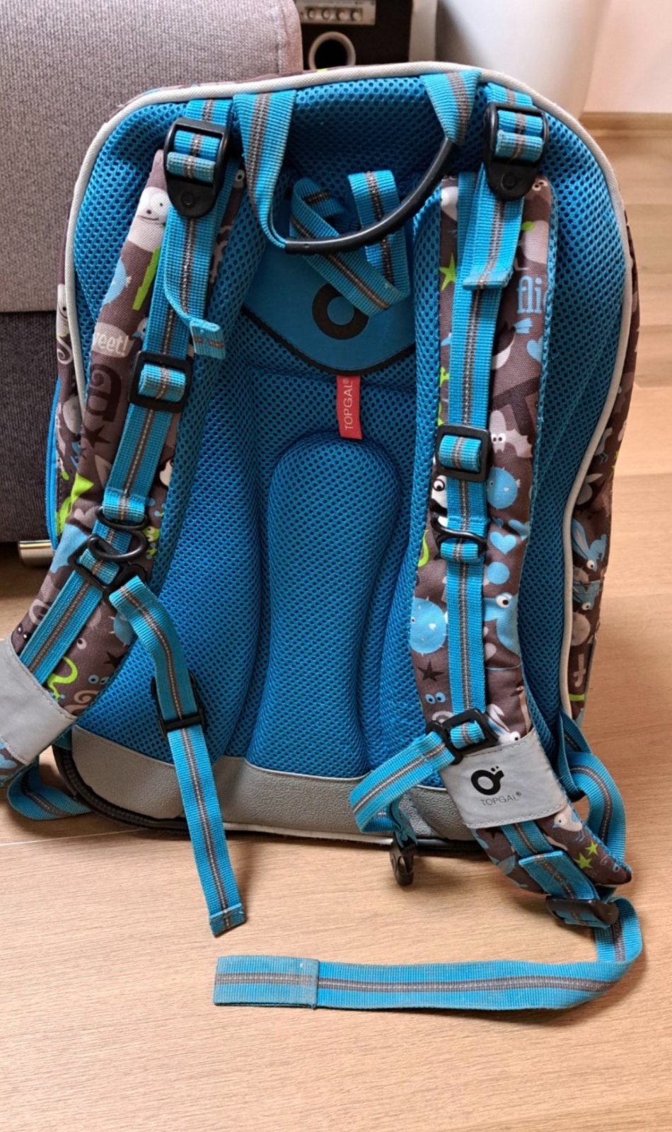 Predam v dobrom stave tasku.vsetky zipsi funguju.Jediny nedostatok co som nasla (nevidno ak taska je na zemi ani trosku ) je pofotene zo spodku kus osuchana.Inak krasne ,syte farby. Syn dostal novu tasku ,iba preto sme tasku vyradili .Topgal znacka je velmi kvalitna. Rocnik ZS 1-5.