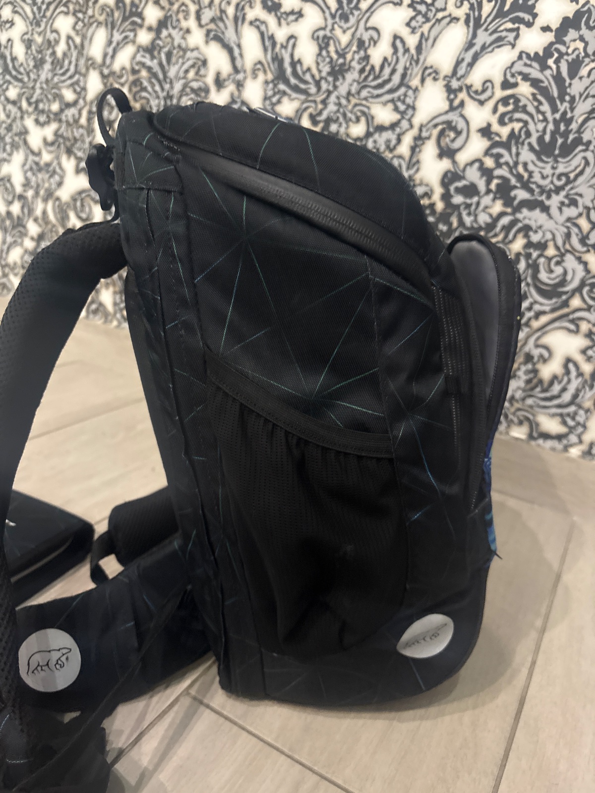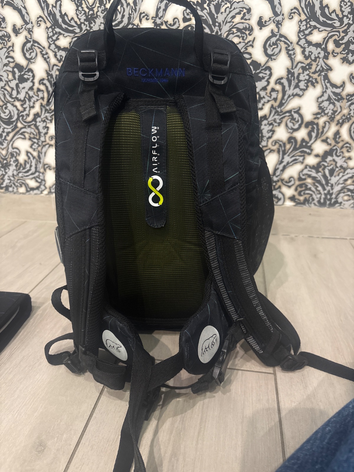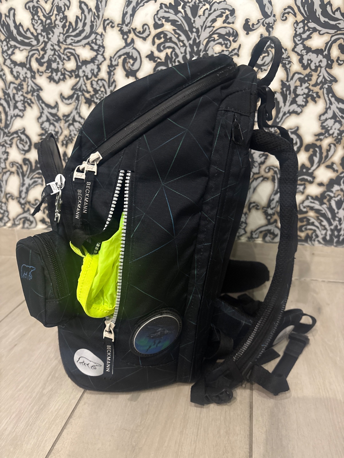 Skolska taska super stav, oblubena a kvalitna znacka Beckmann, peracnik aj desiatovy box s tym istym motyvom pribalim. Vhodna od 1-4 rocnika ZS. Male poskodenia - dve male suchnutia vpredu na hornom vrecku, je to vidno na fotkach a dve dierky na sietke kde sa dava flasa s vodou- da sa zasit.