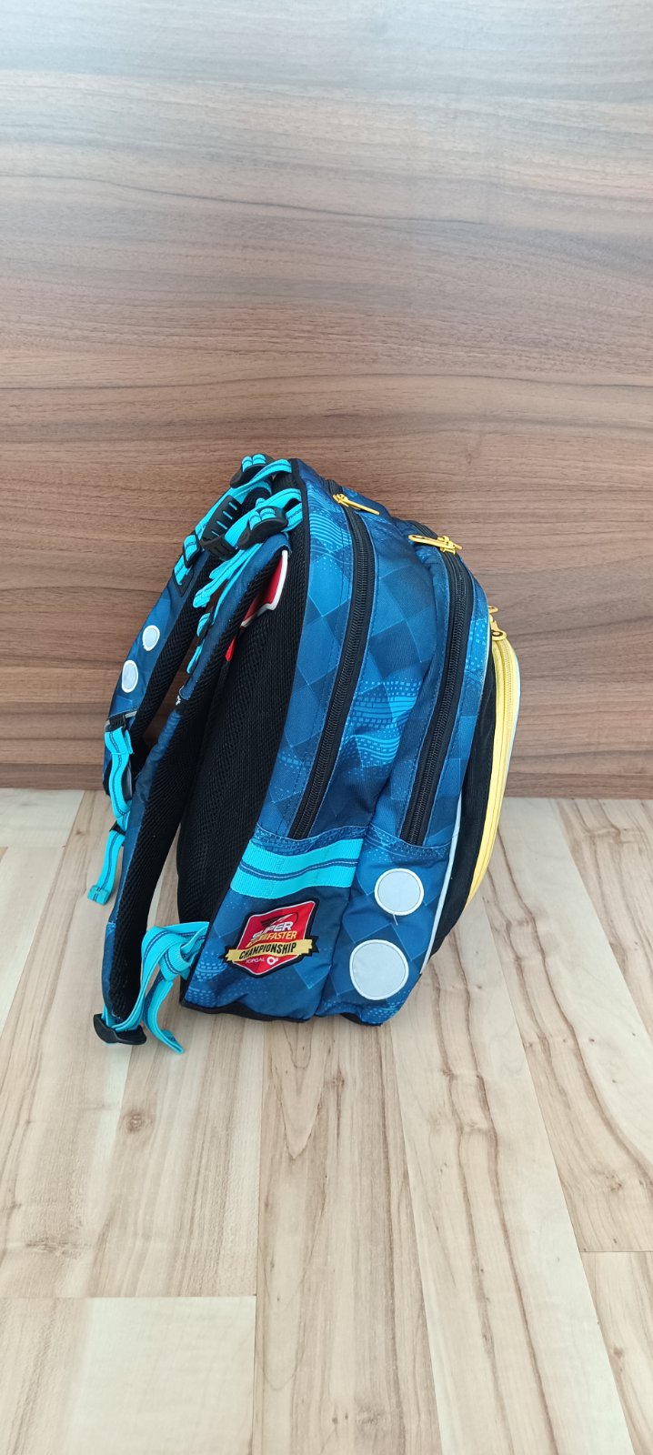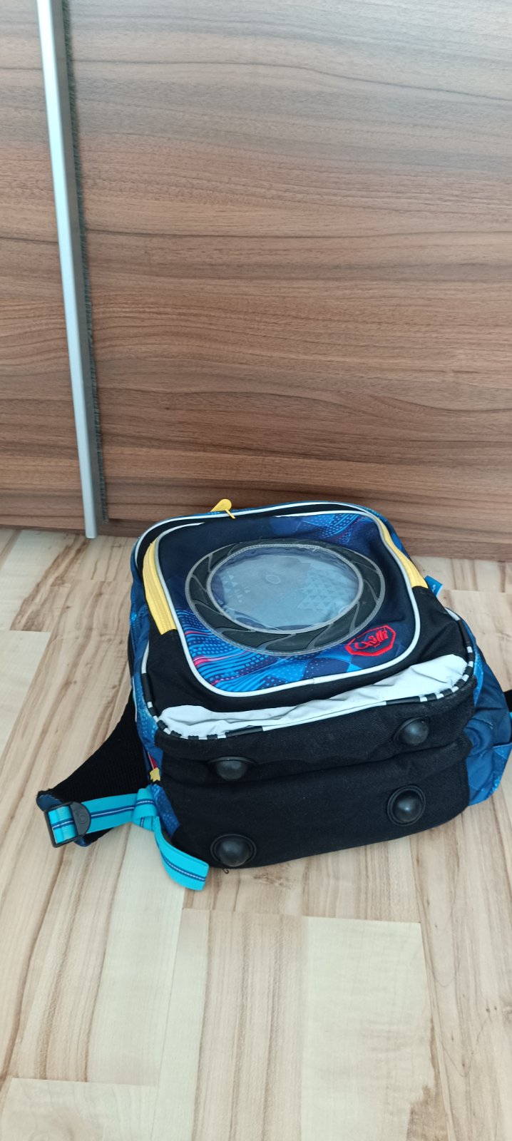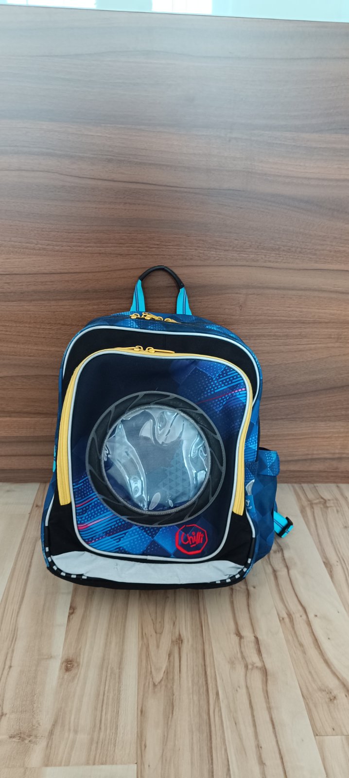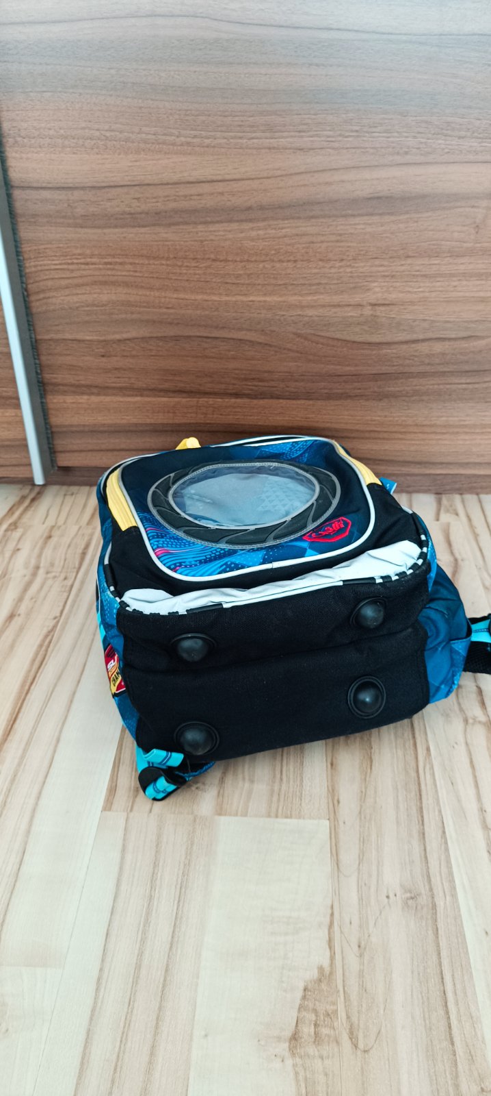 V prednom vrecku má schované priehľadné vrecko so 4 rôznymi obrázkami s motorkami (na fotosu 3 plastové obrázky motorky ,ale mám aj 4 obrázok) , ktoré si môže meniť podľa ľubovôle, alebo si tam dať obrázok napr. svojej vlastnej motorky ... dvojkomorový batoh s veľkým predným vreckom, súčasťou sú 4 vymeniteľné obrázky motoriek pevný lisovaný chrbát a nízka váha 0,98 kg! Chrbtový systém je vďaka anatomicky tvarovanej lisovanej pene ultraľahký. Aj na chrbte malého školáka bude batoh sedieť ako uliaty. Ramenné popruhy sú polstrované, ergonomicky tvarované a hlavne - dajú sa utiahnuť v hornej i spodnej časti batohu. Výškovo nastaviteľný hrudný pásik zabezpečí, že popruhy nebudú schádzať ani z drobného chrbta. Najťažšie školské potreby dávajte vždy do zadnej komory. Tá je širšia ako predná a pojme všetko potrebné do prvých tried ZŠ. Predná, užšia komora unesie všetko ostatné a navyše v nej určite využijete praktické sieťové vrecko na zips. Menovka ( taktiež nepoškodena )ukrytá v prednom vrecku nad sieťovým vrecúškom pomôže batohy rozoznať.keď sa v triede stretnú dva rovnaké. Ten ľahko umiestnite do prednej komory alebo do predného hlbokého vrecka, kde určite oceníte aj odnímateľnú karabínku na kľúče. Pre fľaštičku na pitie je vrecko na boku batohu. Batoh má Reflexné prvky Presvedčiť sa môžete na detailných fotkách, kde je batoh nafotený s bleskom a vidieť reflexné prvky , pútko na prenášanie batohu v ruke a pútko na lavicu.