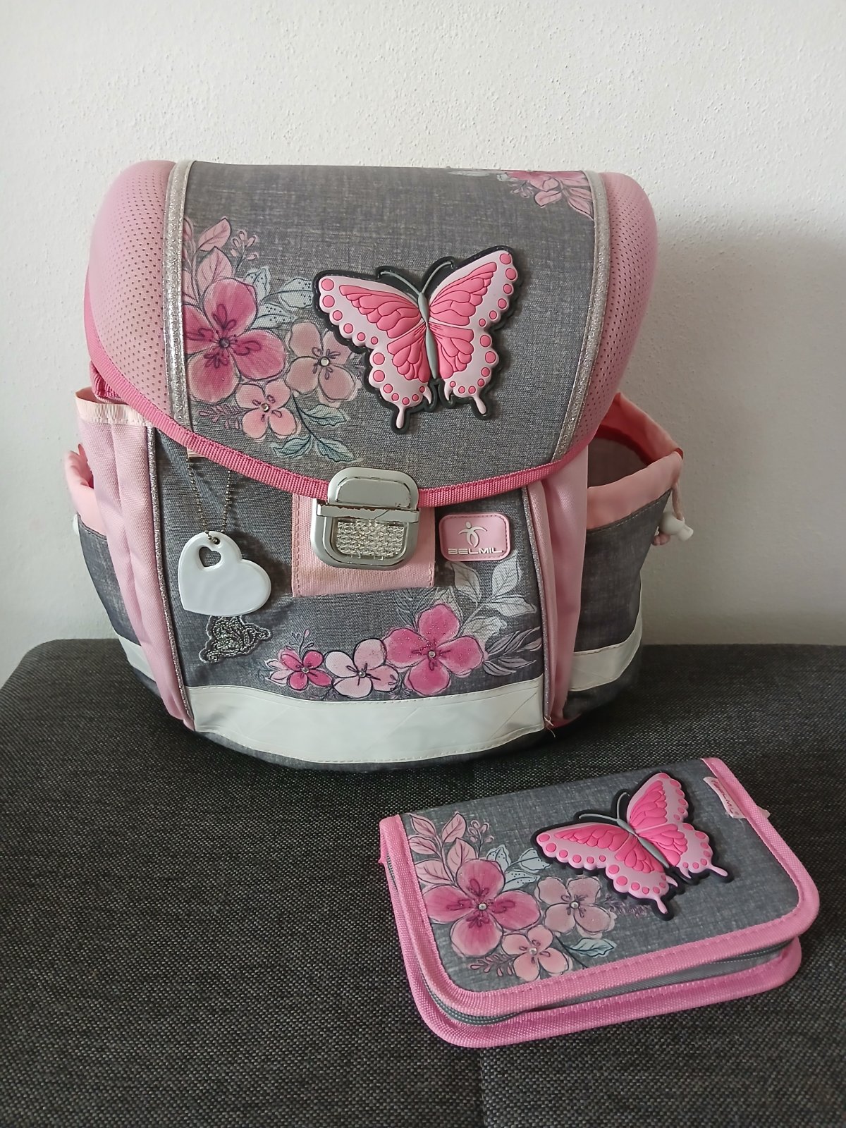 Krásna taška pre dievčatká používaná v prvej triede, peračník čisto nový..