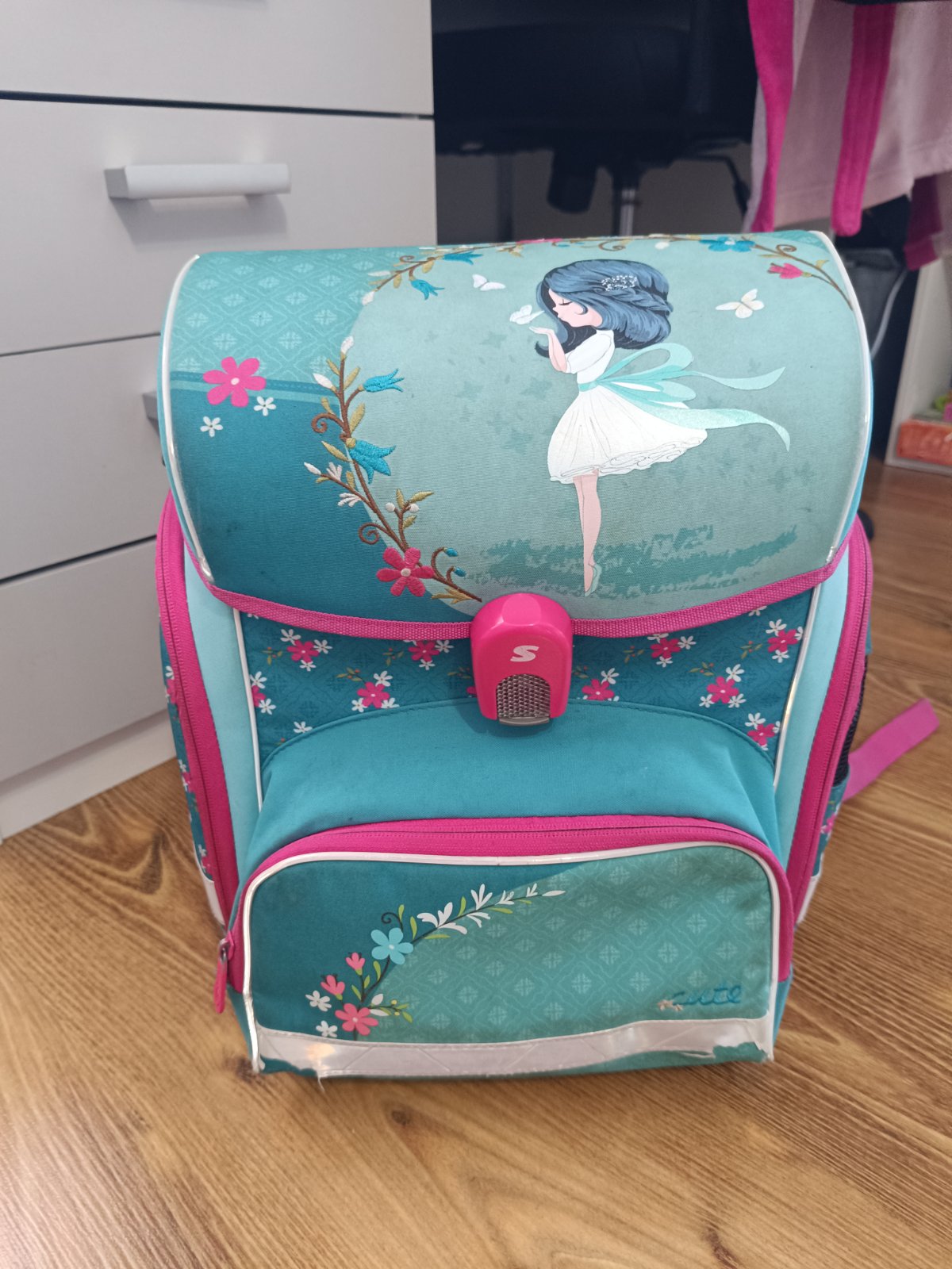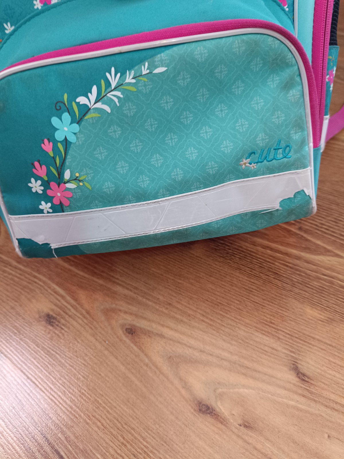 Je používaná 2,5 roka, pre nenáročnú slečnu, má poškodenia - pozrite fotky. Je plne funkčná - zipsy,traky, spevnený chrbát,zapínanie na magnet.