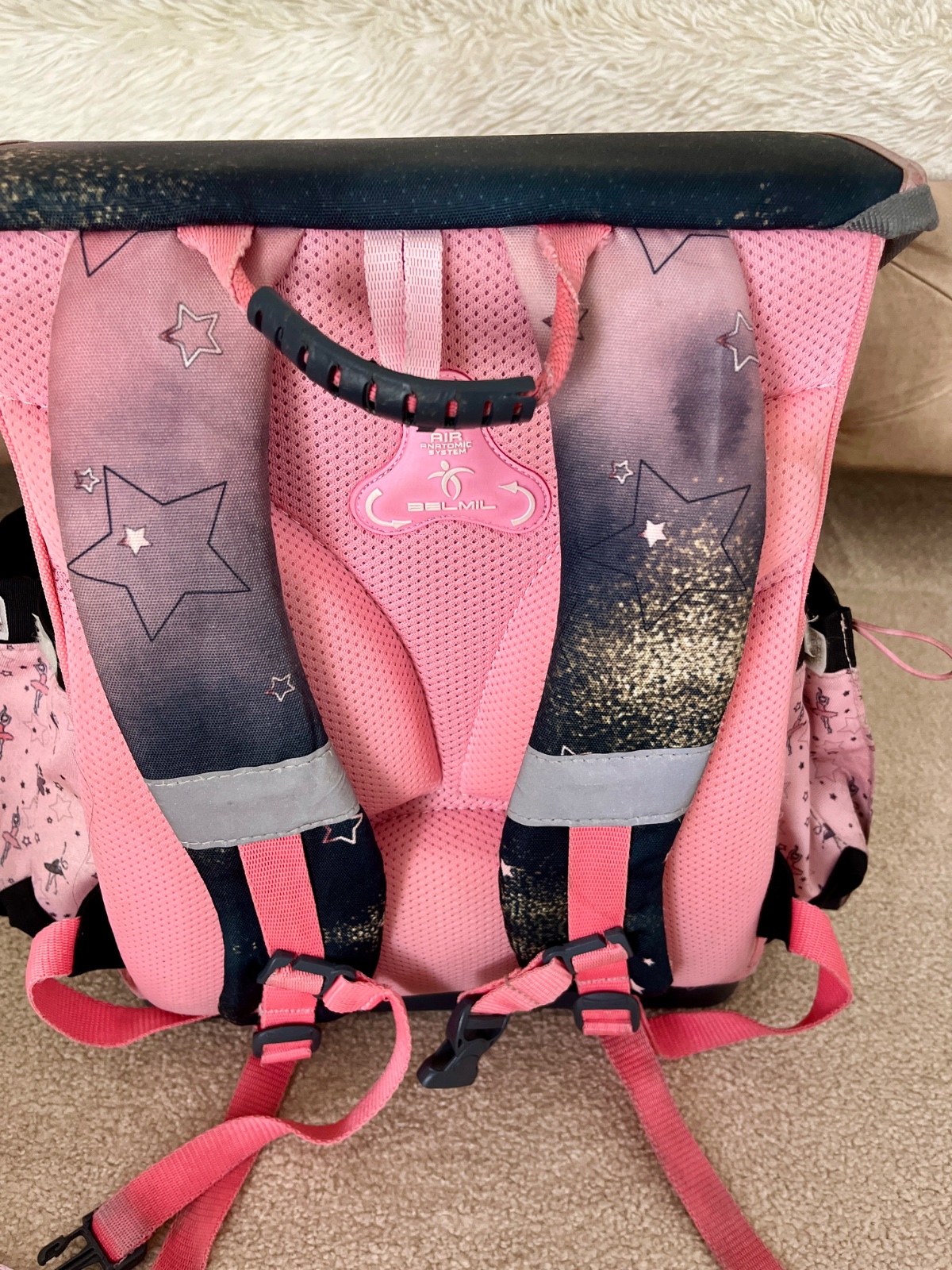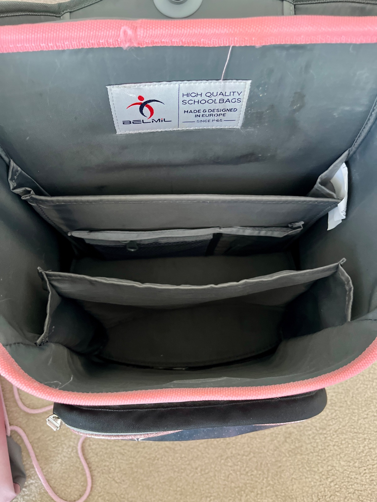 Školská taška belmil.nosena bez vážnejších poškodení.treba ale vyčistiť.