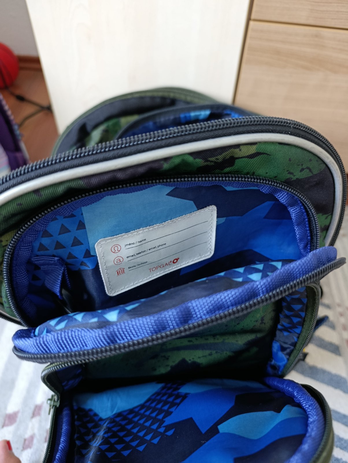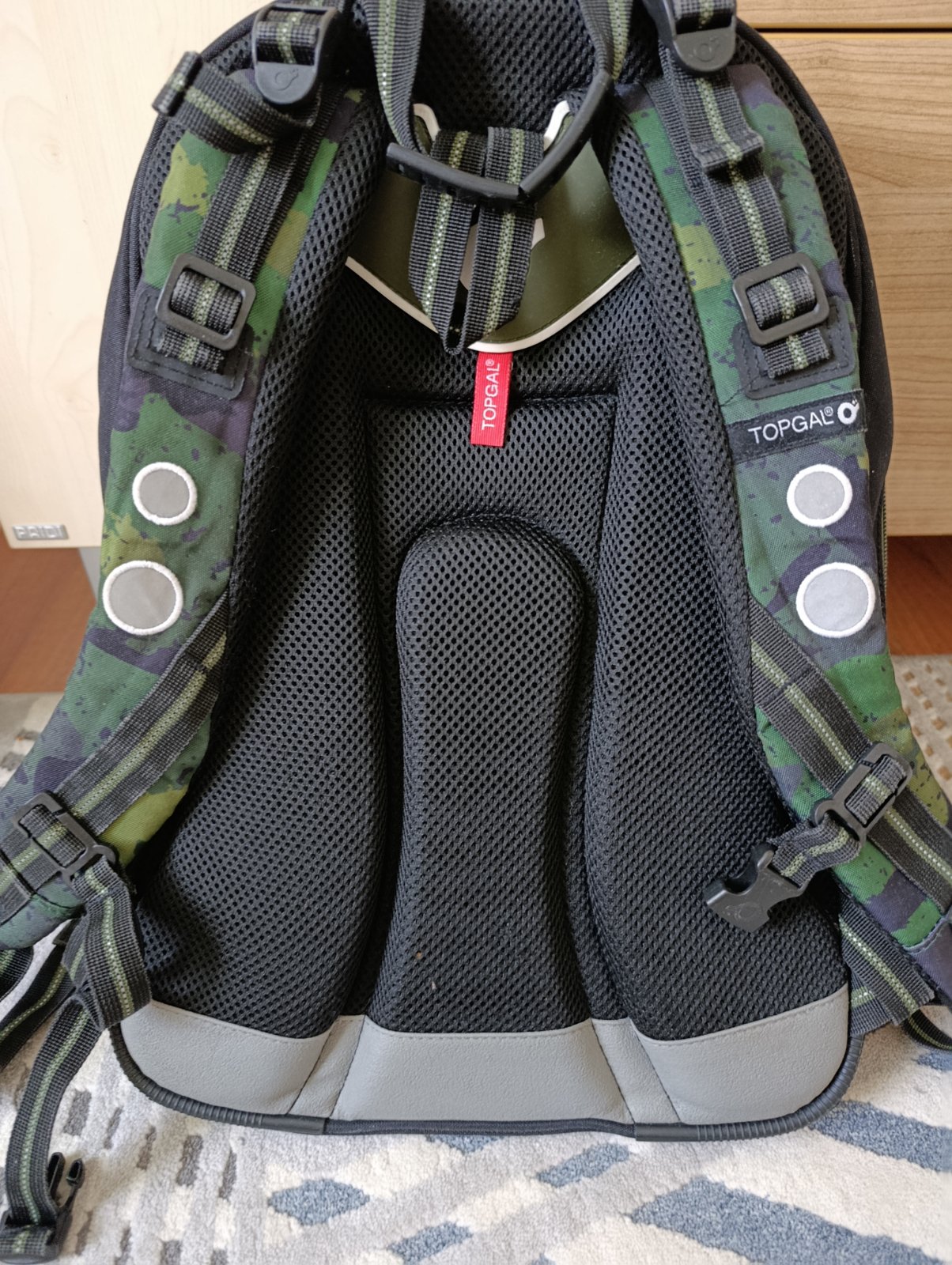 Taška Topgal po synovi. Nosil ju 2 roky. Je vo výbornom stave. Akurát malé poškodenie na reflexnej časti. Ja by som ešte nemenila, ale ževraj už nie je "in" pre neho. Taška je vyčistená.
