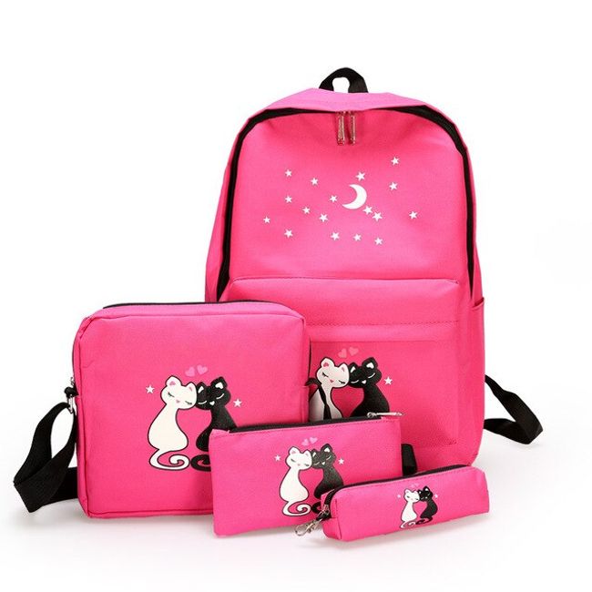 Ponukam uzasnu skolsku tasku v atraktivnom prevedeni HELLO KITTY v krasnej sytej cyklamenovo ruzovej farbe v kombinavii s ciernou s ktorou urcite zaziari.Na prednej strane dominuje aplikacia postav...