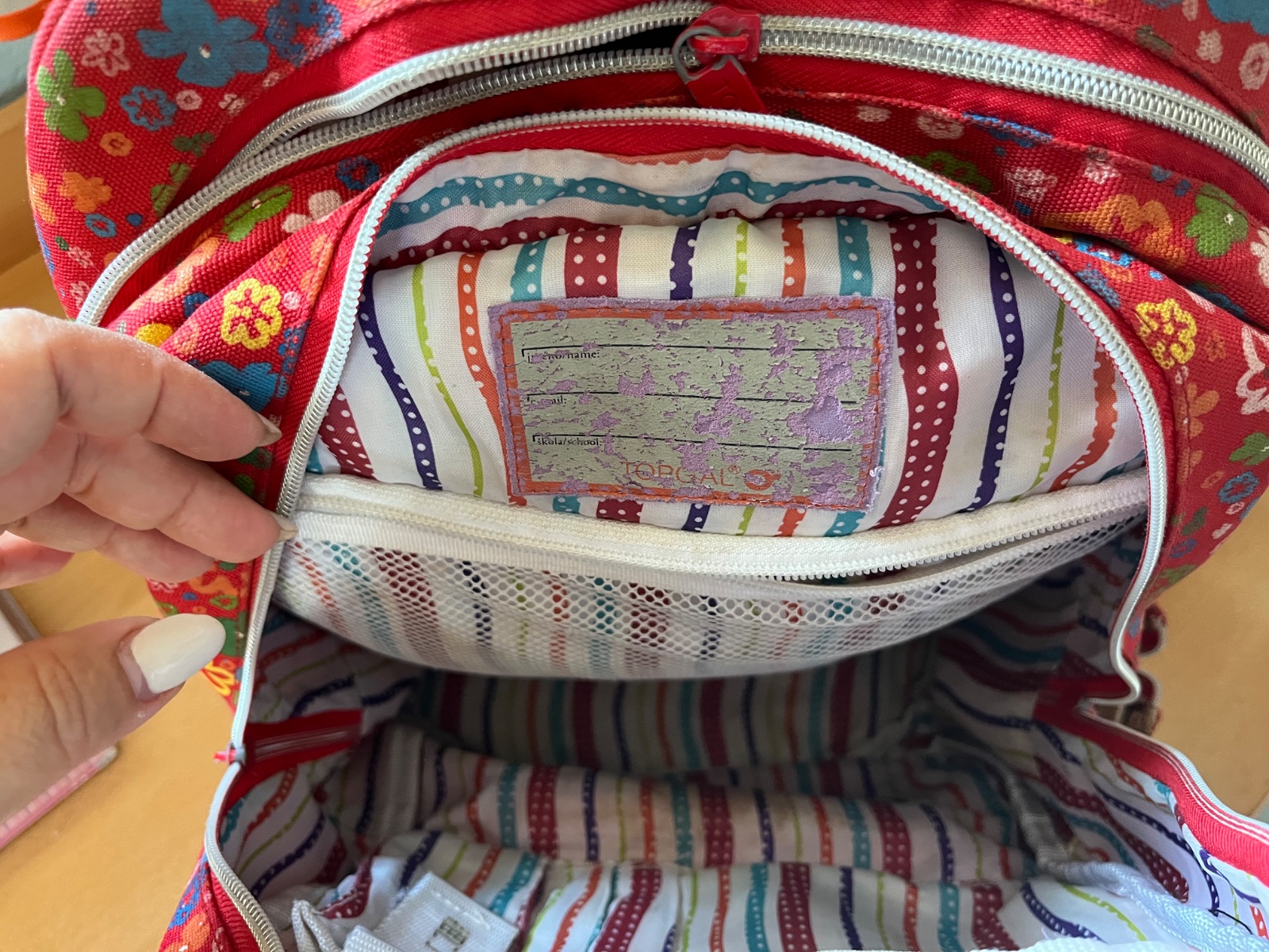Školský batoh zn. Topgal. Taška je priestranná s troma väčšími priehradkami, s menšou priehradkou, na boku s priehradkou na fľašu. Nosená, v dobrom stave. Vhodná pre 1. ako aj 2. stupeň ZŠ.