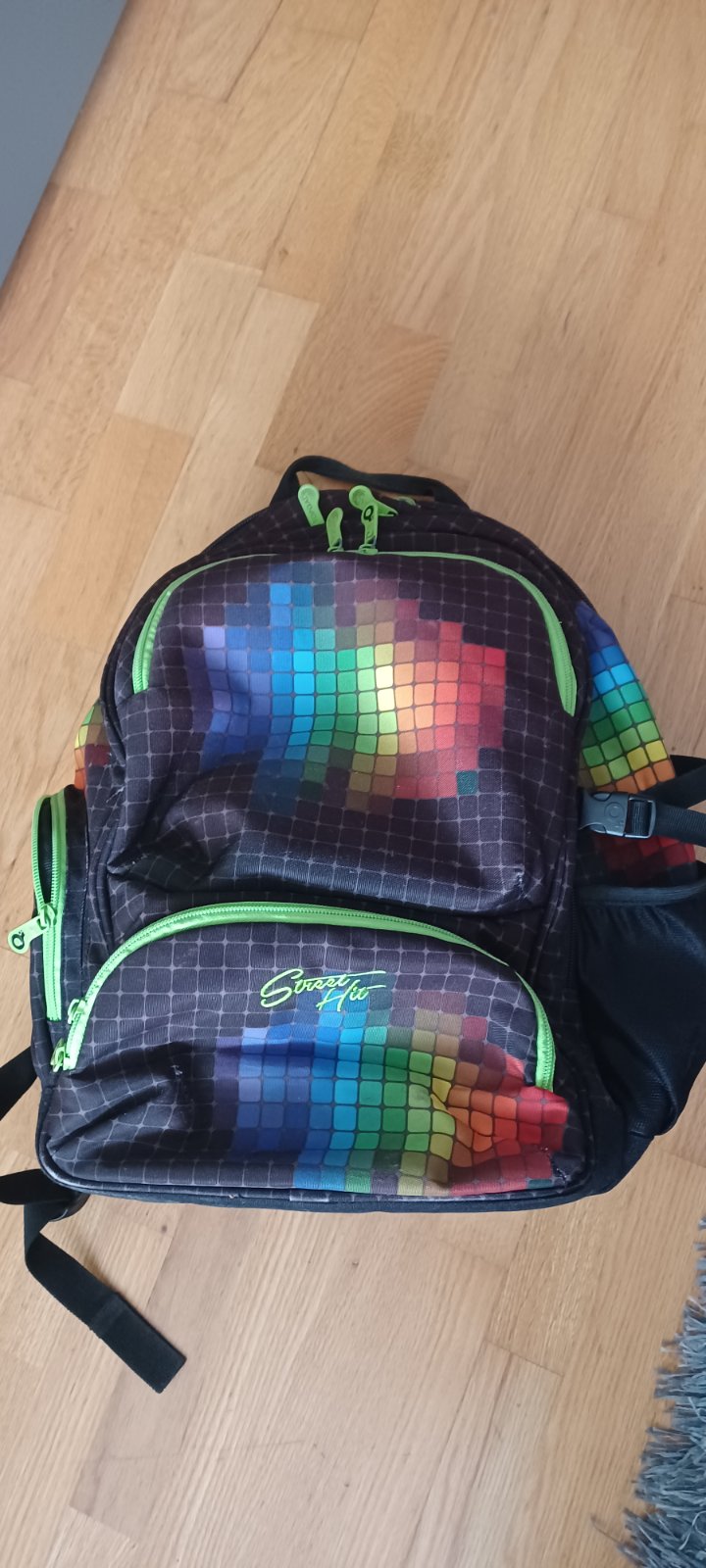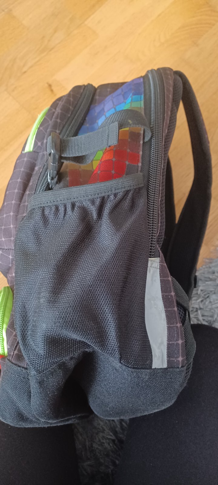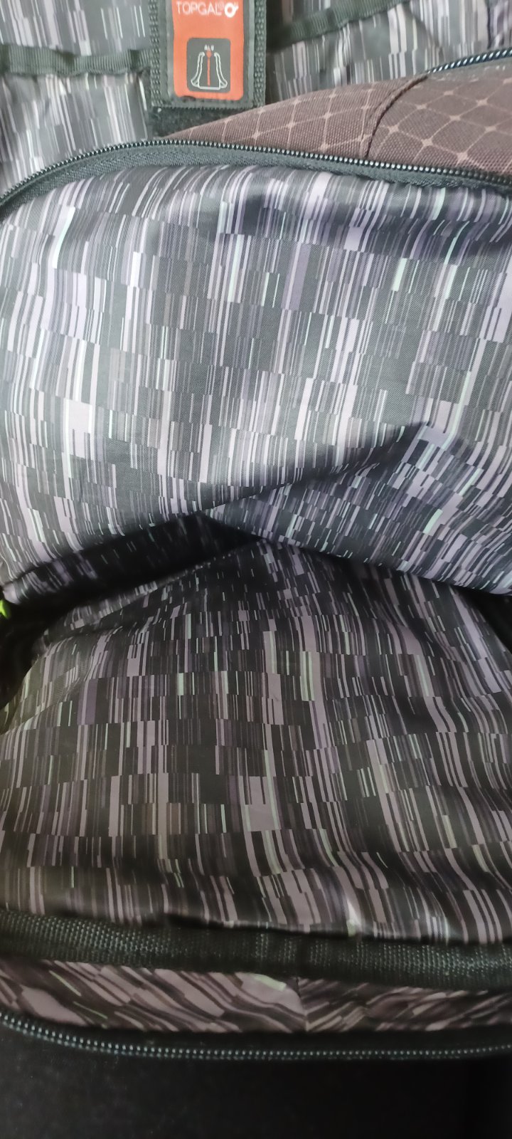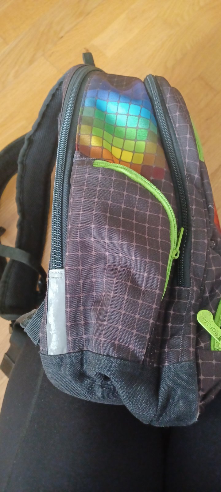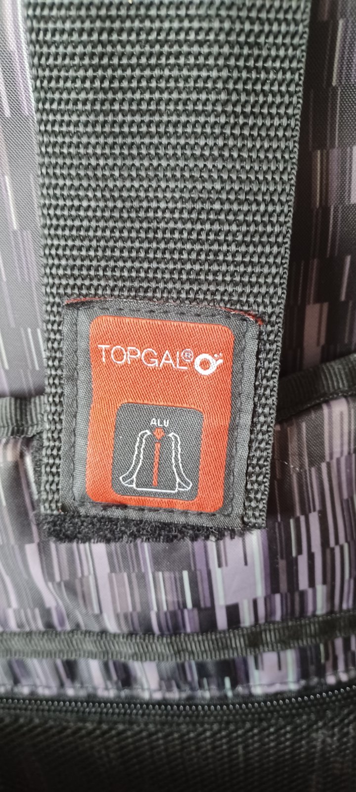 Školská taška značky Topgal. Základná farba čierna s farebným vzorom a reflexnými prvkami. Je veľmi pekná. Po jednom dieťati ako nová. Má dve veľké vrecka, z toho zadné je s prípravou pre notebook. Vpredu dve menšie vrecká a dve po bokoch. Bočné vrecko jedno uzamykateľné a jedno na fľašu aj s popruhom. Každý zips je funkčný, ani jeden bežec nie je zlomený ani poškodený. Zadná strana je s mäkkými časťami na chrbte, vystúžená a nosenie na dve ramená. Taška je v top stave.