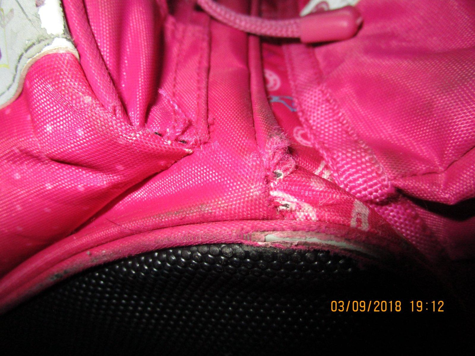 Pre prváka-druháka. Krásna, kvalitná odľahčená aktovka, priestranná , pevná, nepremokavá, reflexné prvky. Môzete pozriet na nete. Chrbtová časť makko polstrovaná.Pouzívaná 2 roky, poškodenie nafotené. Rozmery v 38 cm, š 25 cm, hlbka 15 cm. Je výborná, mali sme ju radi, ale potrebujeme na kolieskach väčšiu. PC cca 70 eur