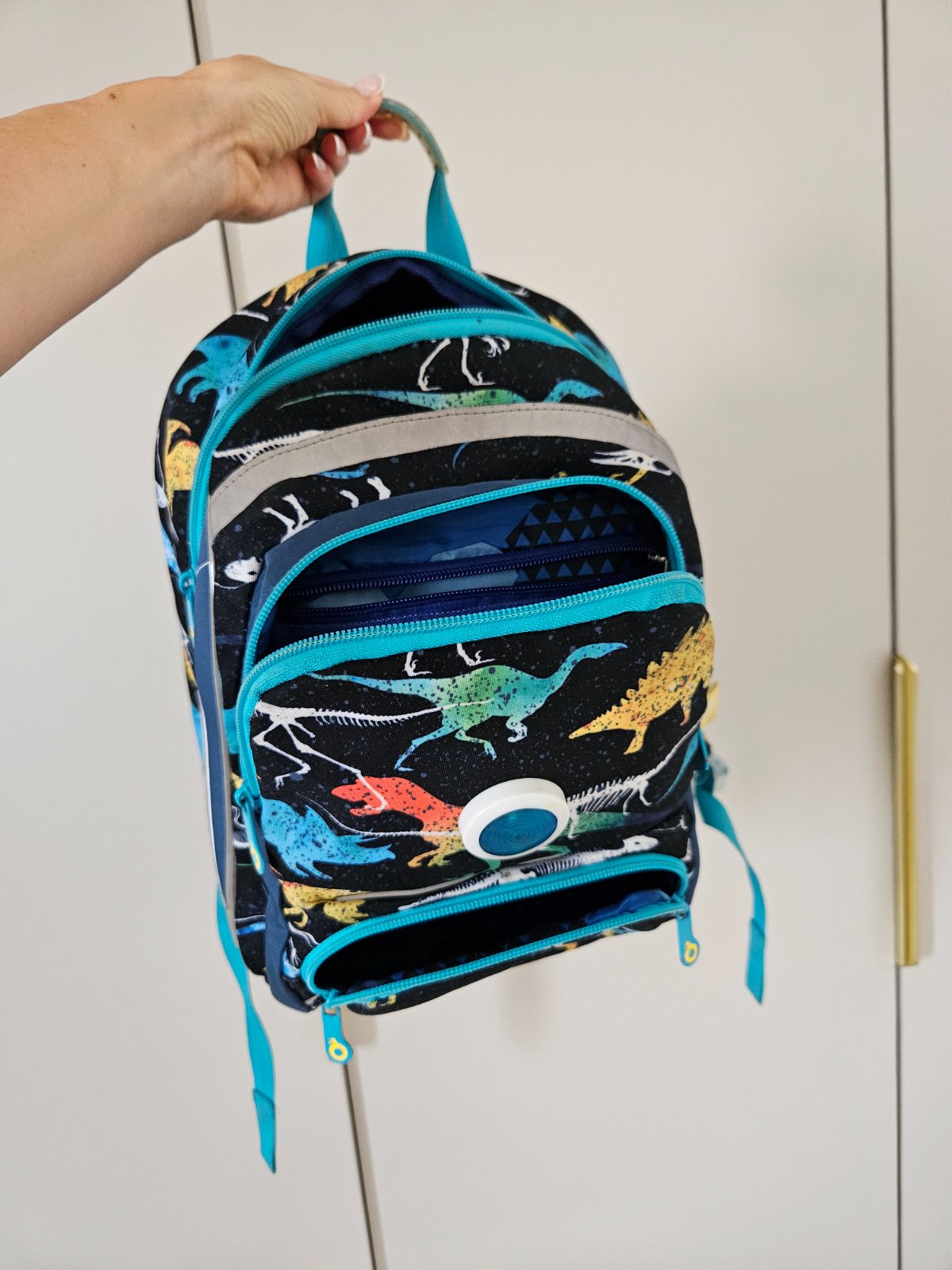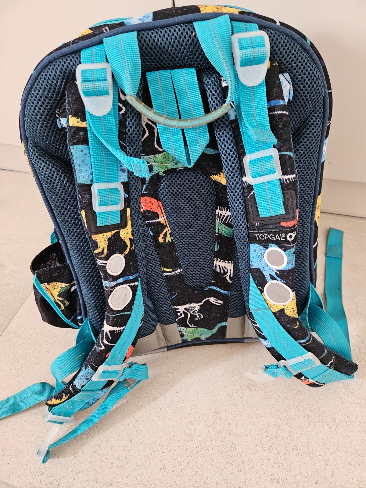 Veľmi pekná a zachovalá taška značky TOPGAL, syn ju nosil prvé dva ročníky. Taška nemá žiadne poškodenia okrem svetielka vpredu, ktoré prestalo svietiť asi polrok po tom ako začal syn tašku používať, ale keďže sms to nepotrebovali, tak sme to nijako neopravovali. Taška je veľmi pekná, prepracovaná, kvalitná, synovi sa nosila veľmi dobre.