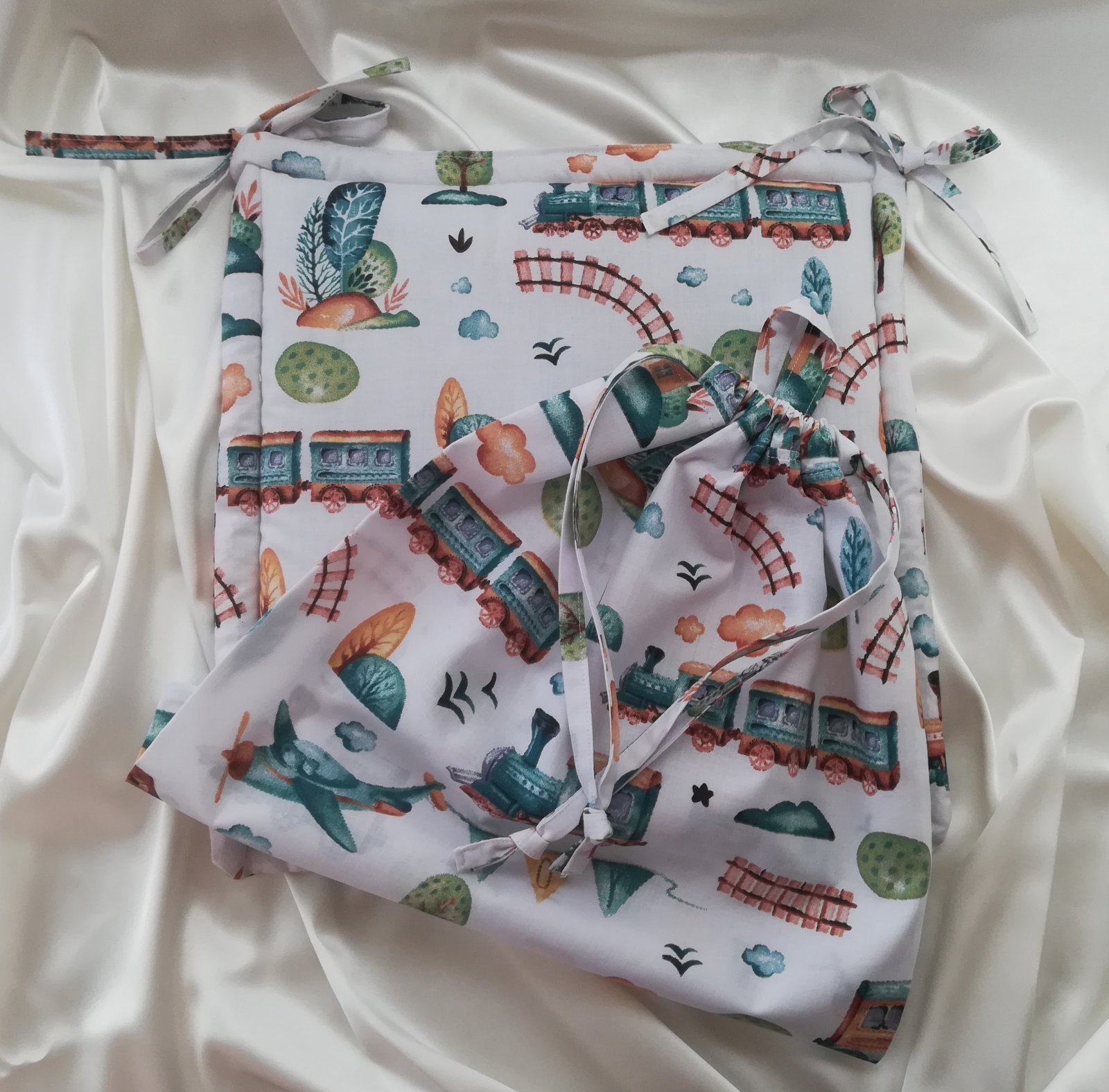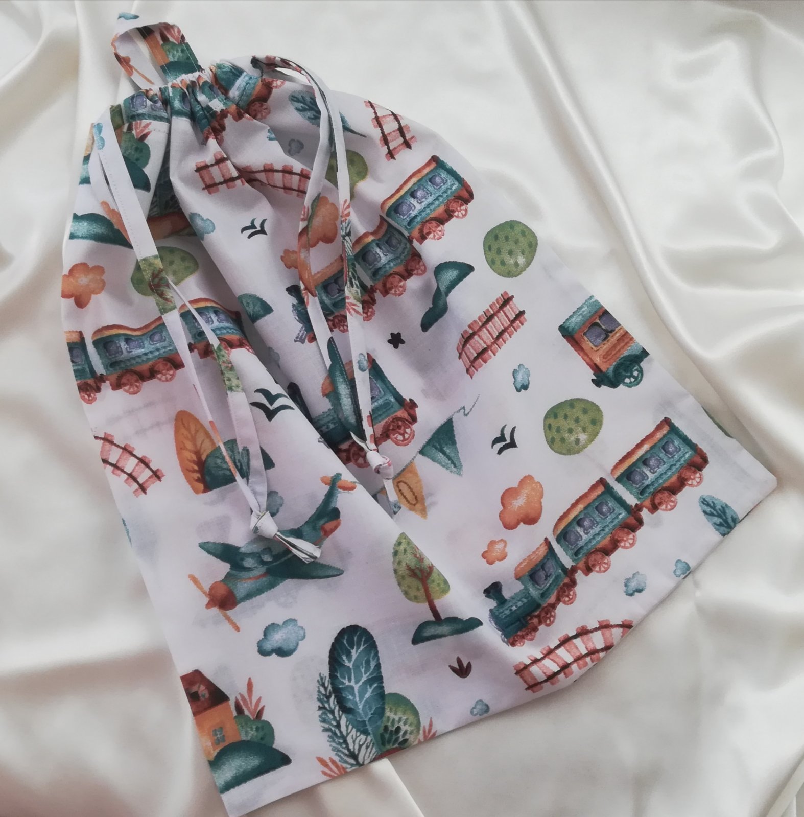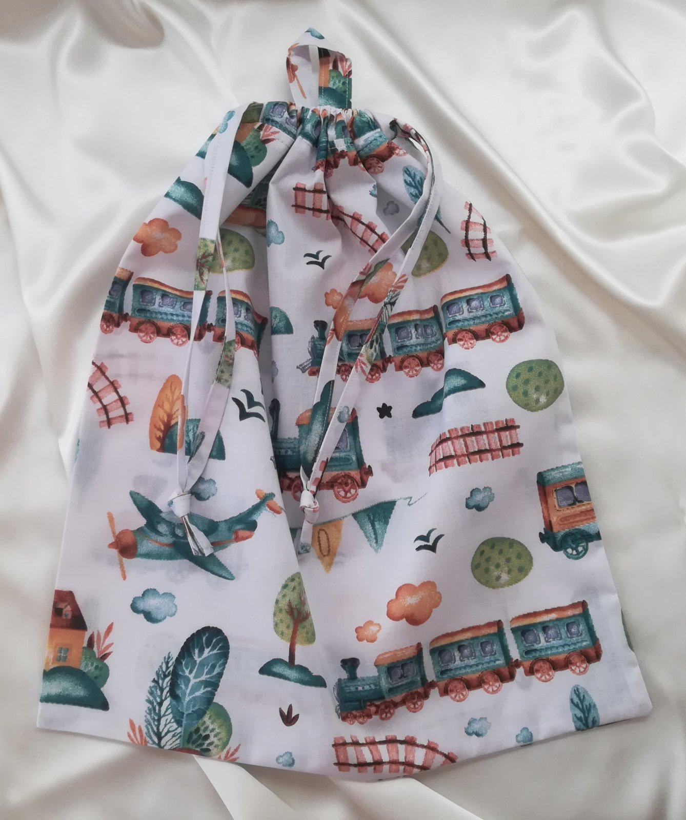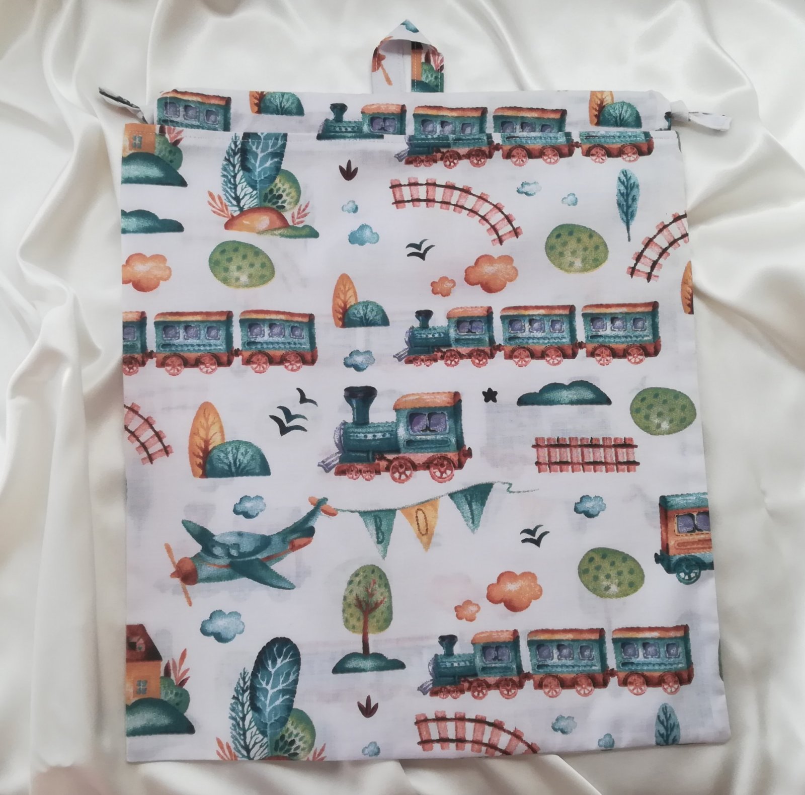 Handmade- ručne vyrábané v mojej dielničke, v bielej farbe s vláčikmi