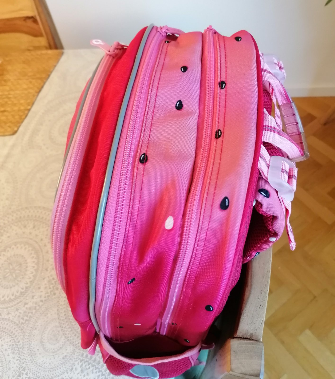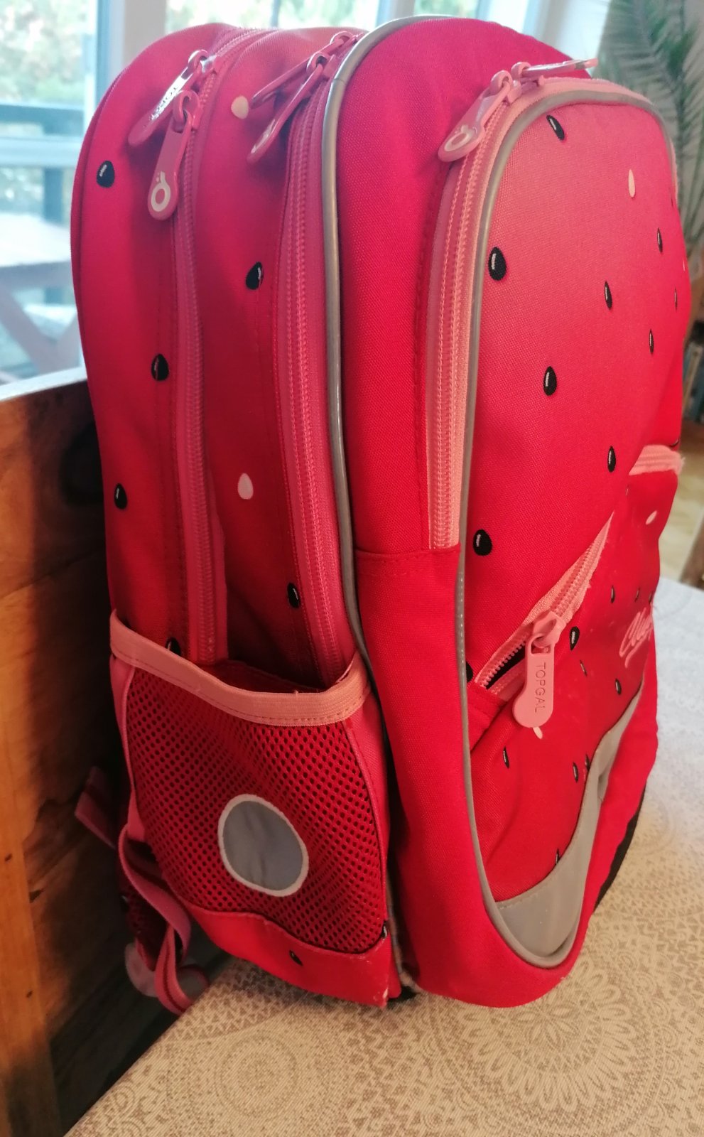 Predám školskú tašku Topgal pre 1.-4. ročník, mierne osuchana v spodnej časti, inak plne funkčné zipsy, zapínania, pevná, tvar drží ako nová, je vyprana specialnym prípravkom na nepremokavé tkaniny.