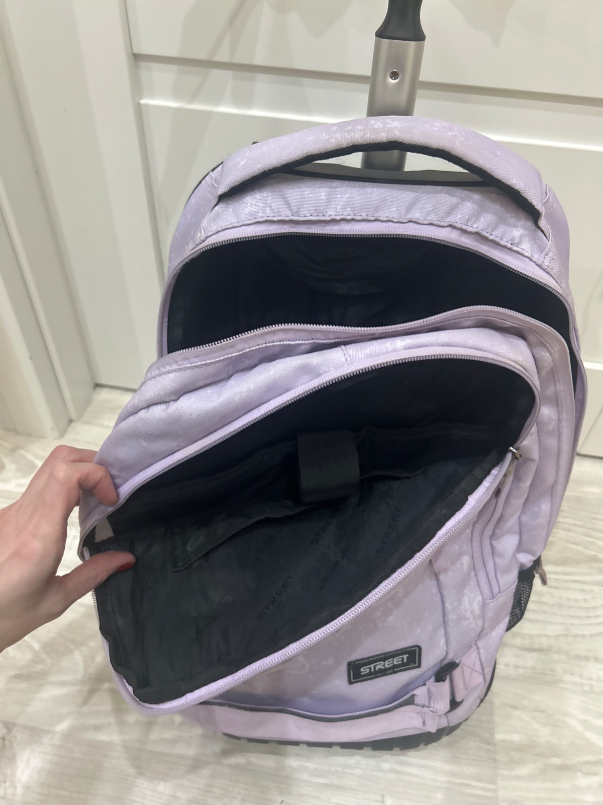 Používaná taška na kolieskach s možnosťou zavesiť aj na chrbát.Plne funkčná.